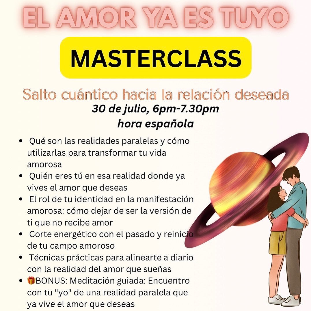 En esta masterclass transformadora aprenderás a utilizar las realidades paralelas y el poder de tu identidad para crear el amor que verdaderamente deseas, desde dentro hacia fuera.