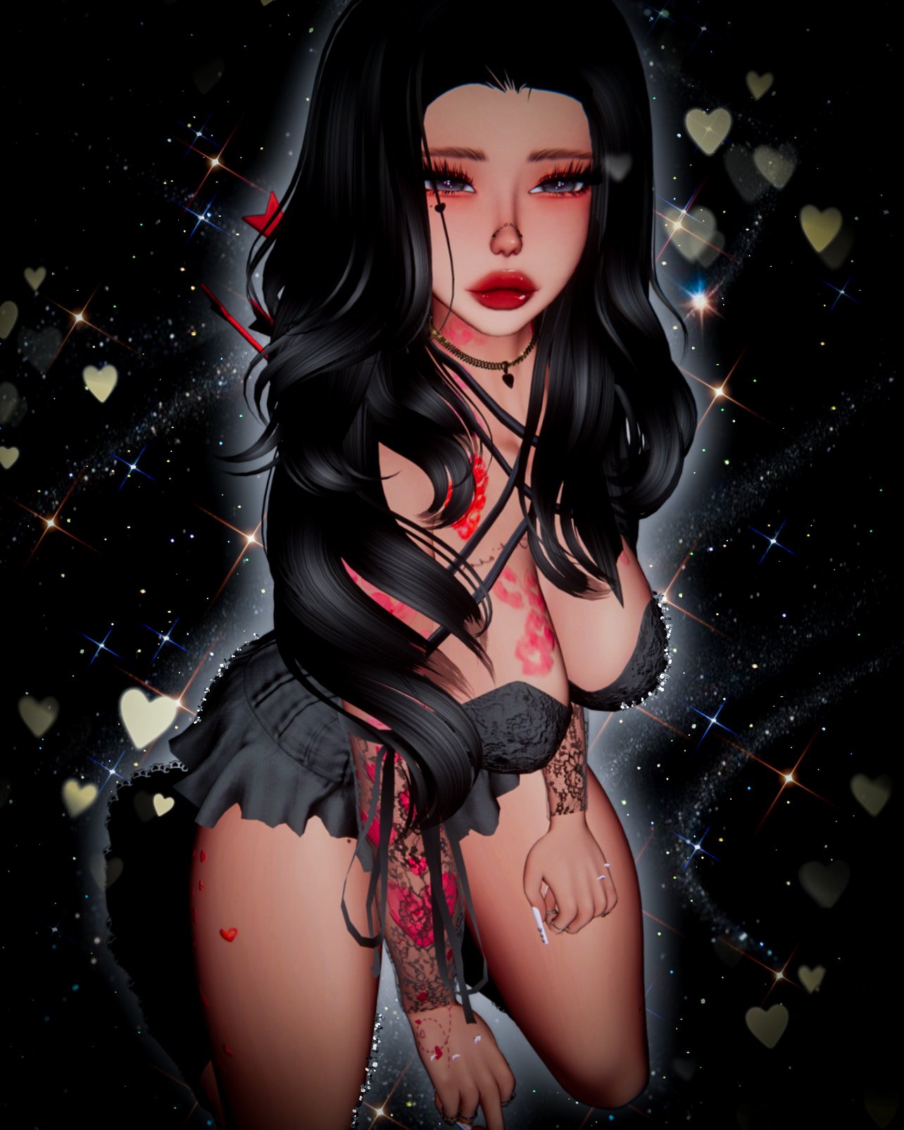 ACC: ribbons and arrows, lace, fishnet, fishnets, tail, glasses