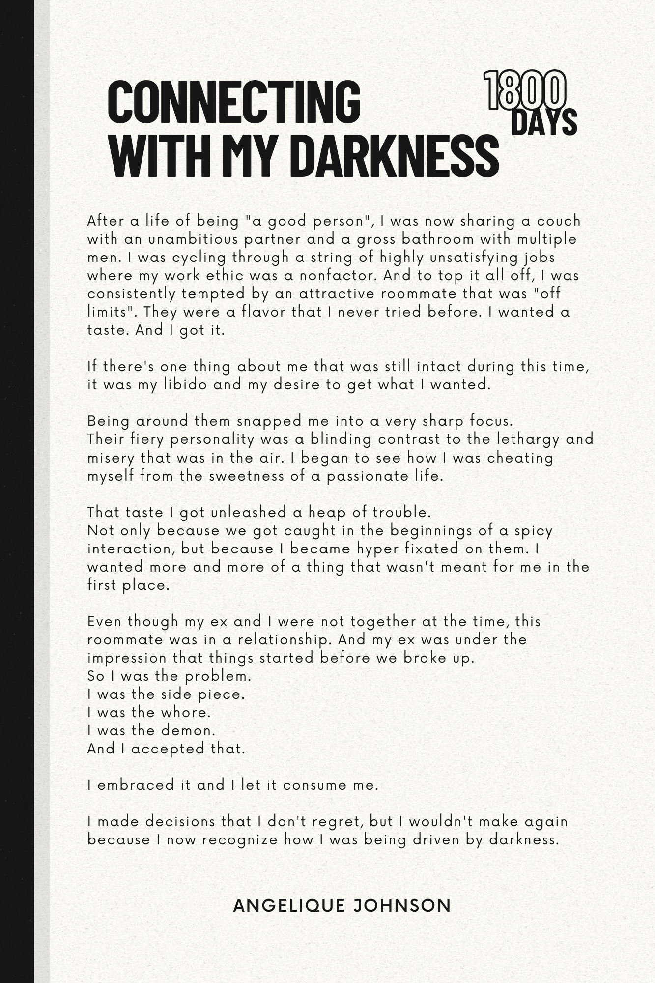 "Days of Darkness" offers a collection of insights that the author, Angelique Johnson, utilized in her real life to release her cynical, loathing lens of life, and rise from the darkness of attempting suicide. It's a valuable resource for individuals navigating challenging inner thoughts and for the people who care about them. Suitable for teens and young adults.