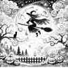 A mini book featuring 3 intricately designed Halloween scenes filled with spooks and watched and monsters Oh My!!!