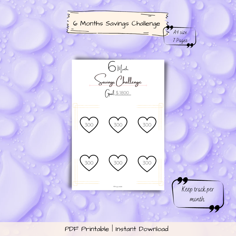Printables like the $1800 Savings Challenge in 6 months can serve you for so many purposes like paying off debt, setting it aside for a house down-payment, taking a vacation, increasing your emergency fund, etc. Perfect if you use cash stuffing or just saving money for the future,