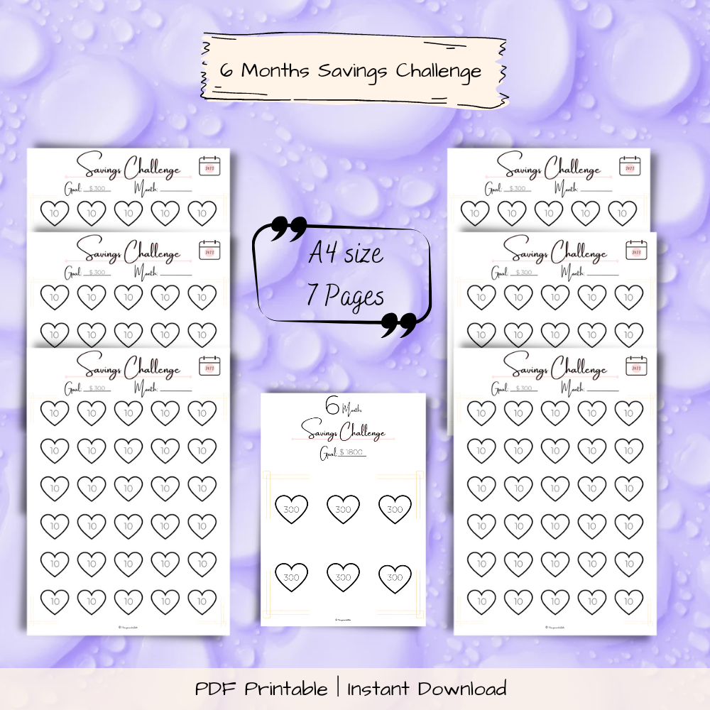 6 months 2024 Money Saving Challenge Printables! This list of 7 savings printables to help you start your savings journey!