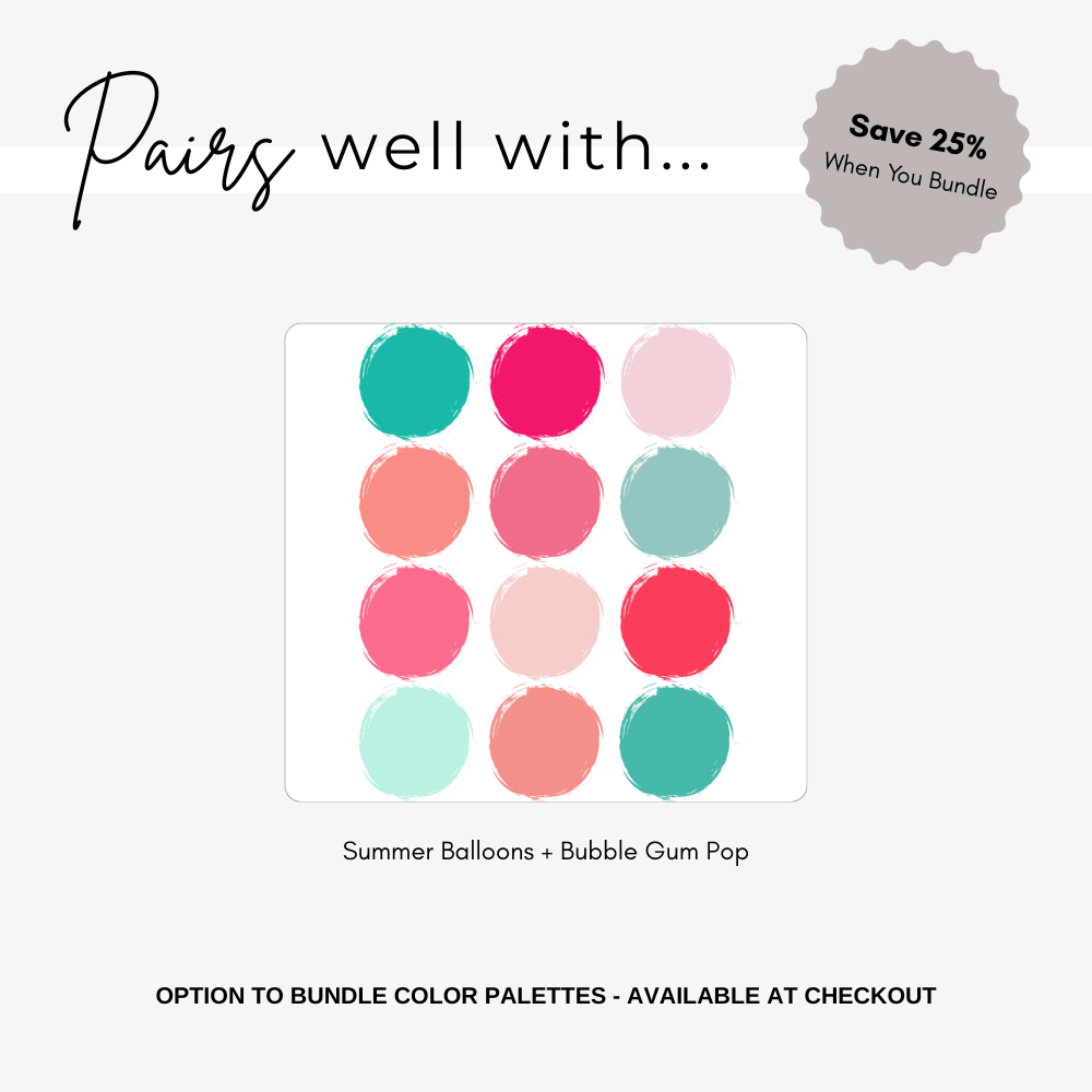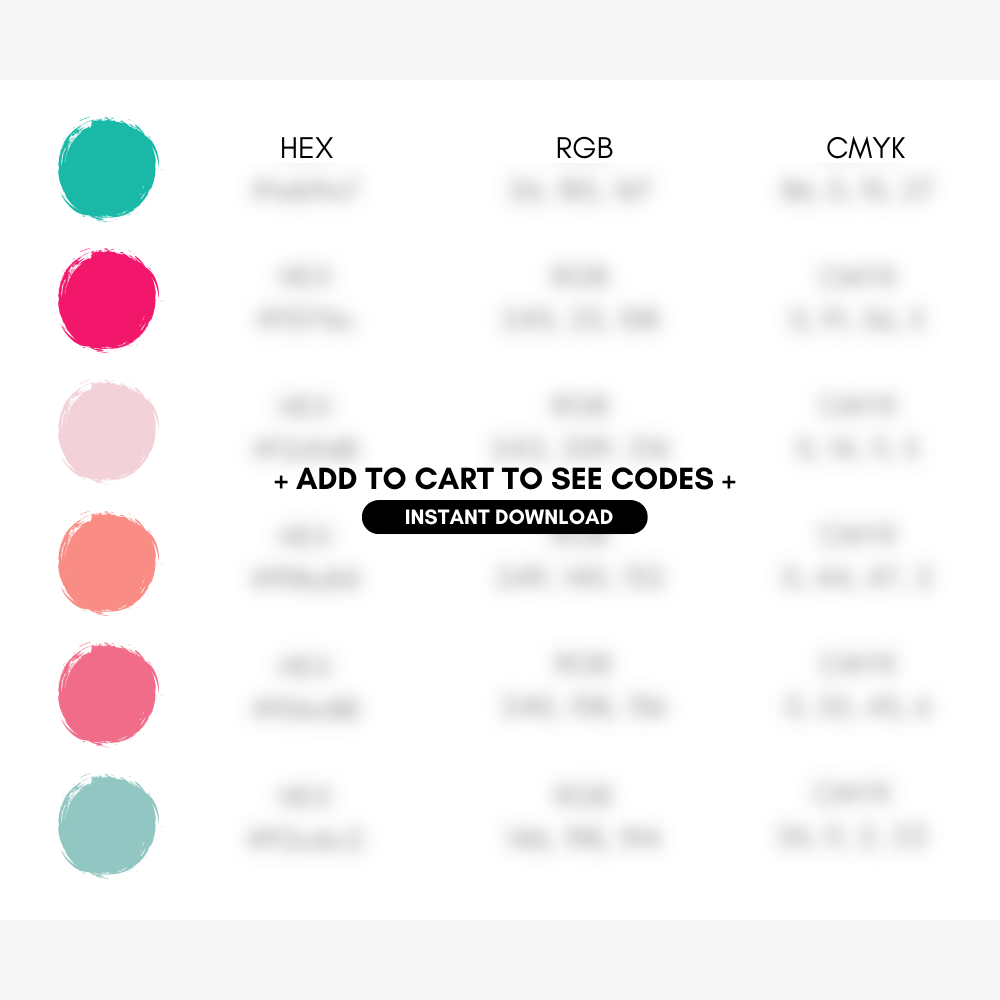 Make your brand pop with our bright Summer Balloons Color Palette – the ideal branding package for Etsy sellers, small businesses, and creative entrepreneurs! This vibrant set includes six curated Hex Codes, RGB, and CMYK values, perfect for creating a brand theme that will make your website and marketing materials stand out. Our palette features a color scheme of bright pink, pale pink, bright teal, soft teal, and orange, capturing the essence of summer, offering a cohesive and eye-catching aesthetic for your branding design needs. Whether you're rebranding or starting fresh, these brand colors will give your business a lively and professional look.