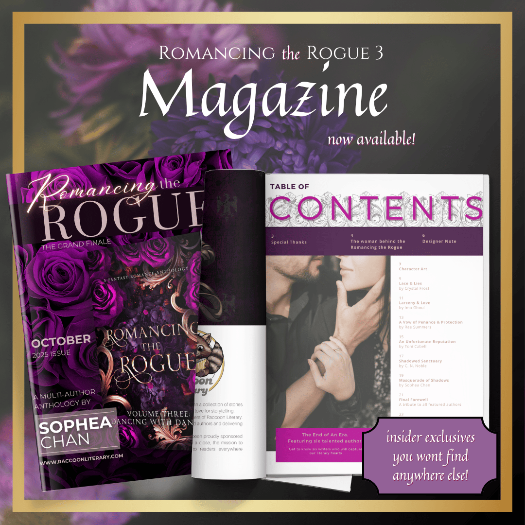 Featuring stories and specials from Sophea Chan, C. N. Noble, Toni Cabell, Ima Ghoul, Rae Summers, and Crystal Frost—this is your chance to celebrate the world of Romancing the Rogue one final time.