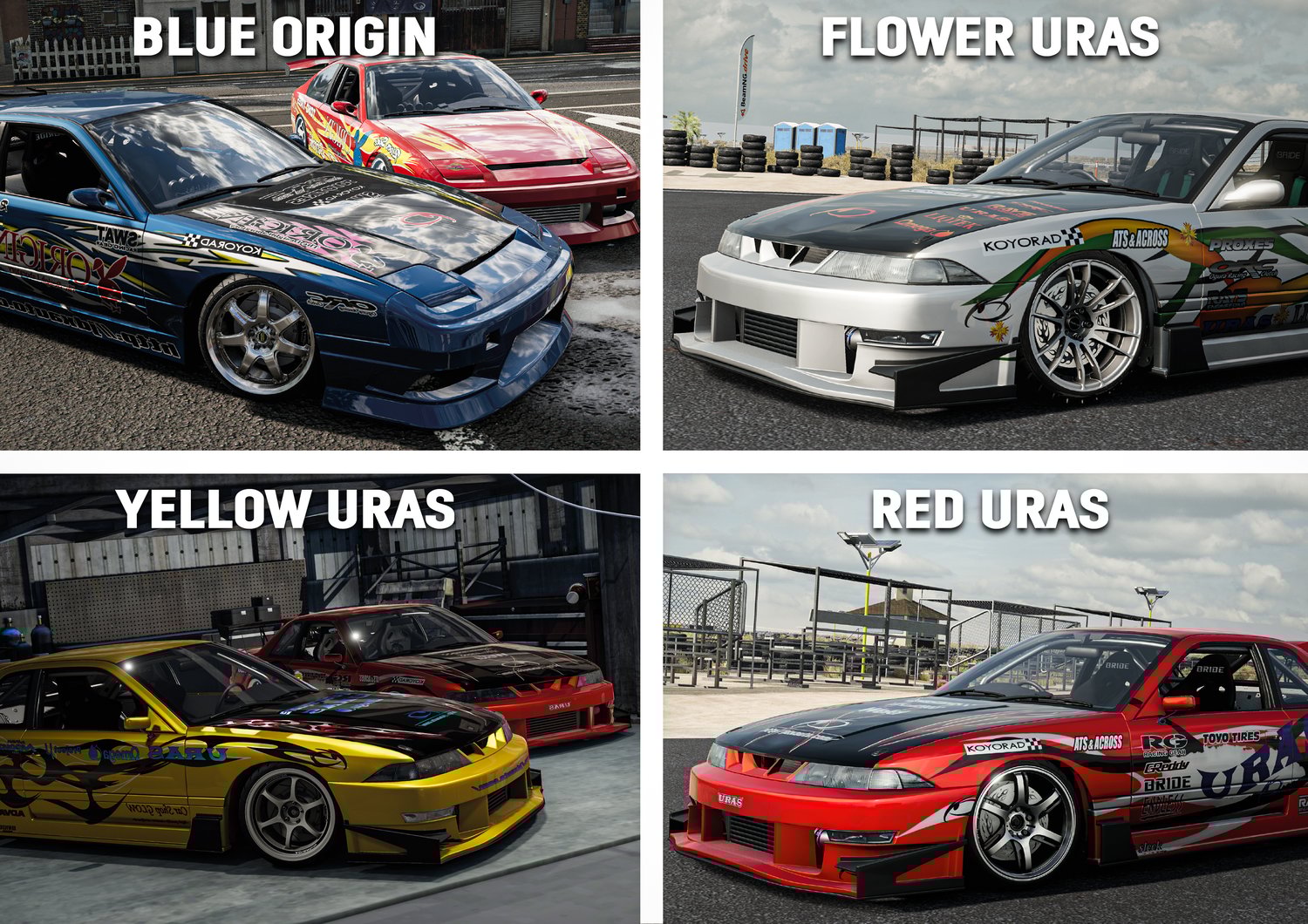 This pack contains 9 unique liveries. Every livery is fitted to each 200BX body type (liftback, coupe, diana).