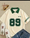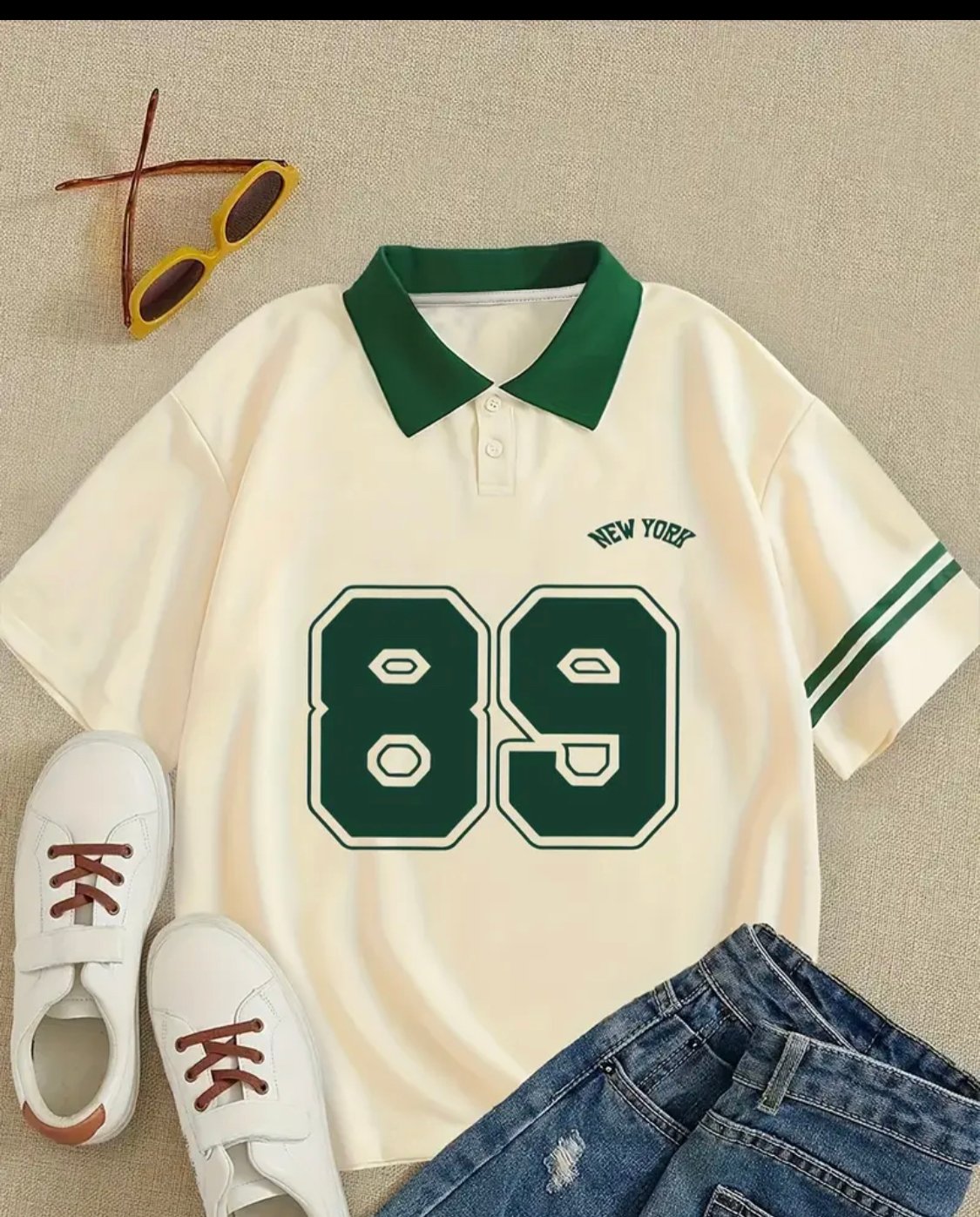 - Vintage-style letter print for a bold yet laid-back aesthetic