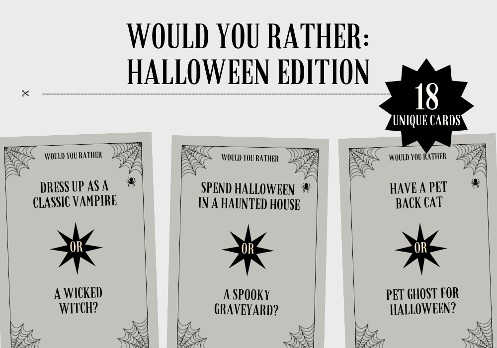 Printable Halloween Would You Rather Cards - 18 Spooky Conversation Starters