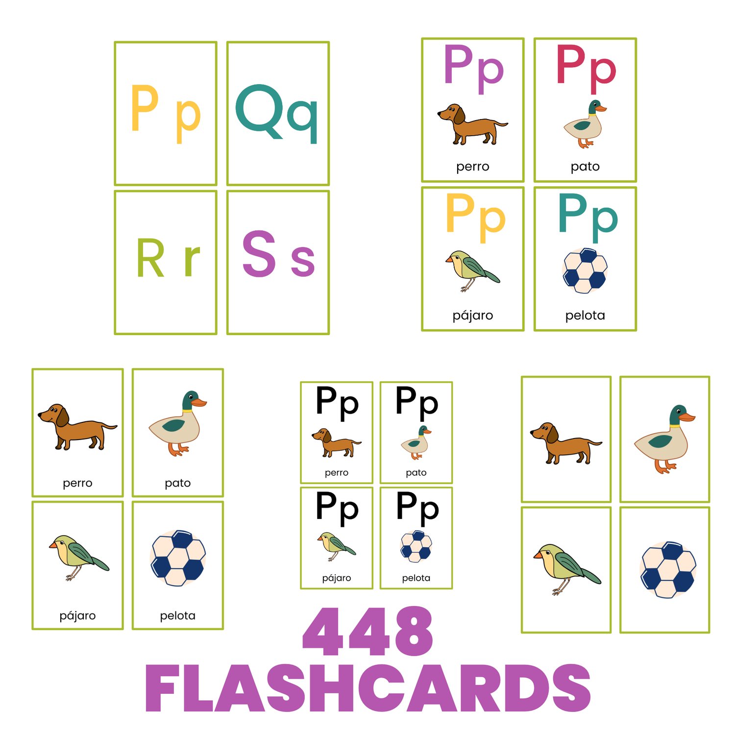 Introduce the Spanish alphabet with this colorful and engaging Alphabet Flashcards. Each card features a letter of the Spanish Alphabet, along with a corresponding image and word to reinforce letter recognition and vocabulary. This Alphabet Spanish flashcard set can be used to review the most common "ABC" words in Spanish. Perfect for the early learner or Spanish beginner. It also contains Spanish vocabulary.