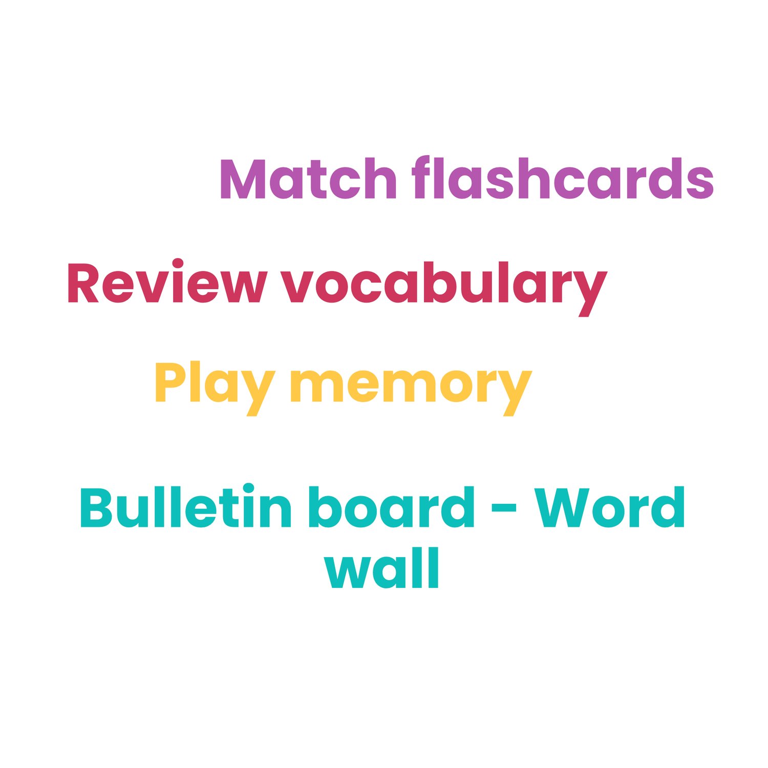 - 105 Flashcard with only images. Useful to match with Alphabet letters.