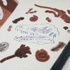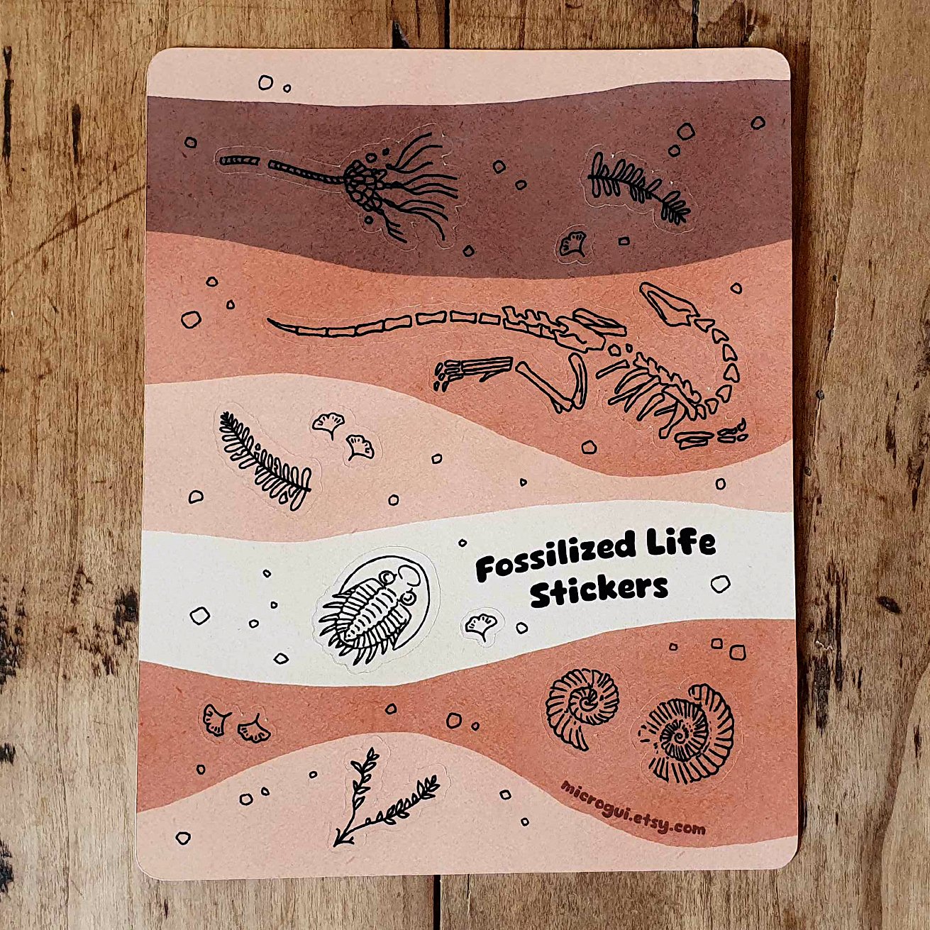 The fossilized life sticker sheet features 12 stickers of various fossils.