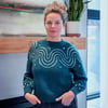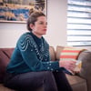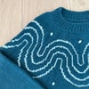 The Arquette Pullover knitting pattern turns heads with a fresh and modern wave motif swept across the perfectly-fitted yoked shoulders. The flattering silhouette features a boxy fit and balloon-sleeves. The sweater is punctuated with a few special details—popcorn texture integrated into the color work, an optional lateral Vikkel braid at the base of the collar, beautiful tubular bind-off edges, and a split hem—all of which come together to elevate the design.