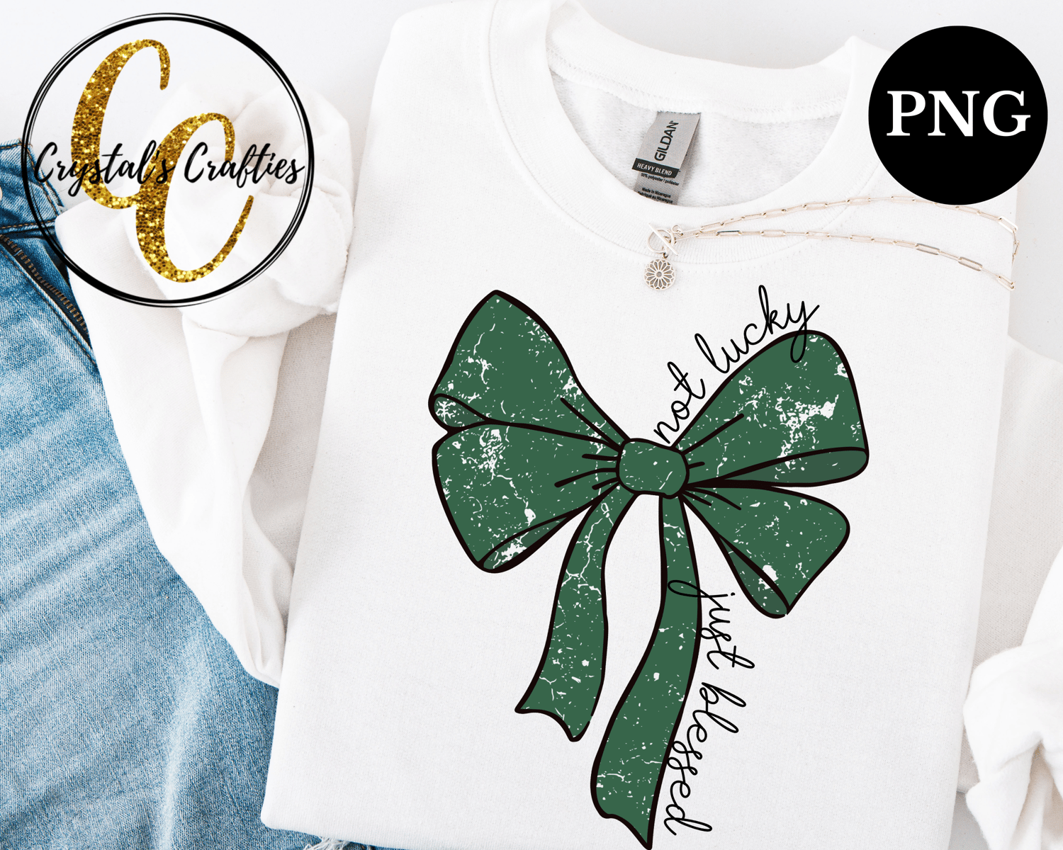This not lucky just blessed St. Patrick PNG design featuring an adorable coquette bow makes the perfect sublimation for St. Patrick's Day shirts, bags, mugs or anything else. You can't go wrong with this coquette St. Patrick's PNG design. You will receive both a distressed Coquette bow and a clean coquette bow.