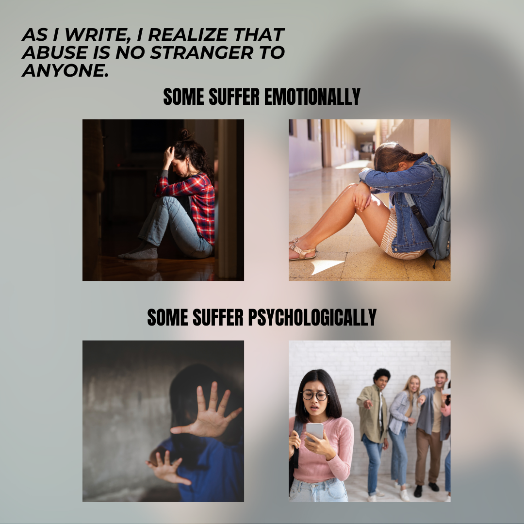 Some suffer psychologically, feel that your pain is unique because you think of all the hurtful things your