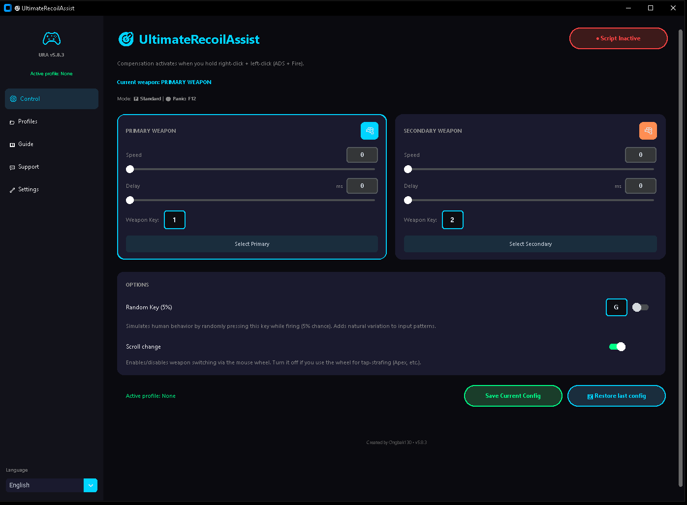 • Game & weapon profiles with customizable recoil patterns