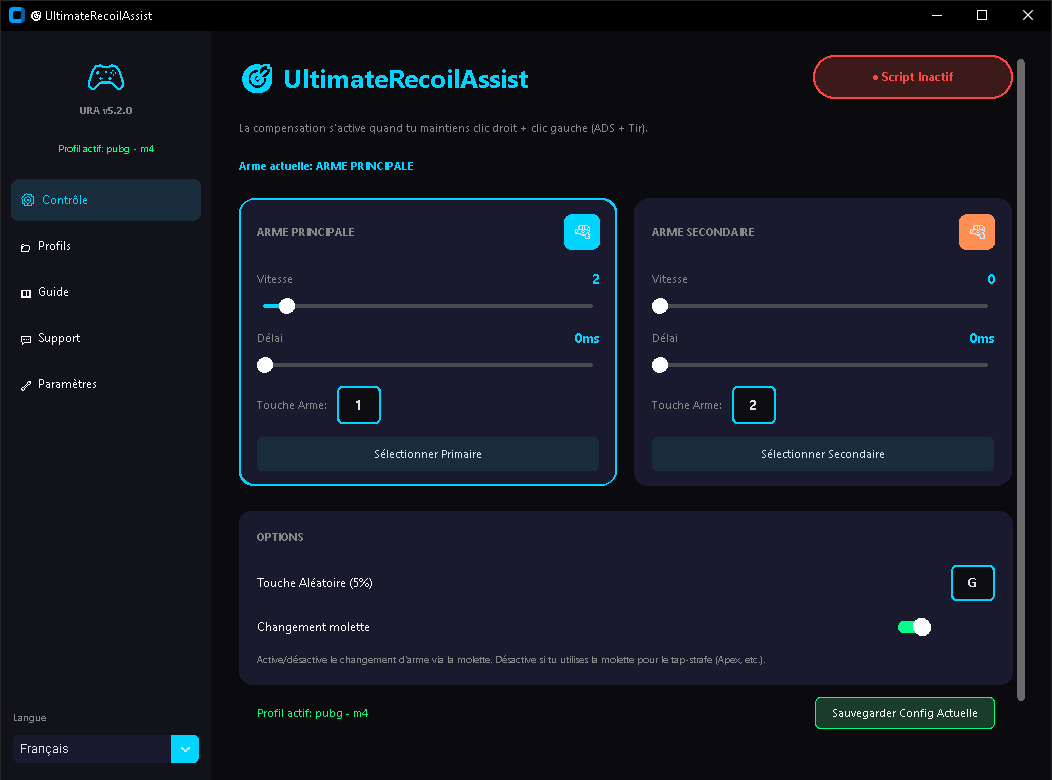• Profils par jeu et par arme avec patterns ajustables
