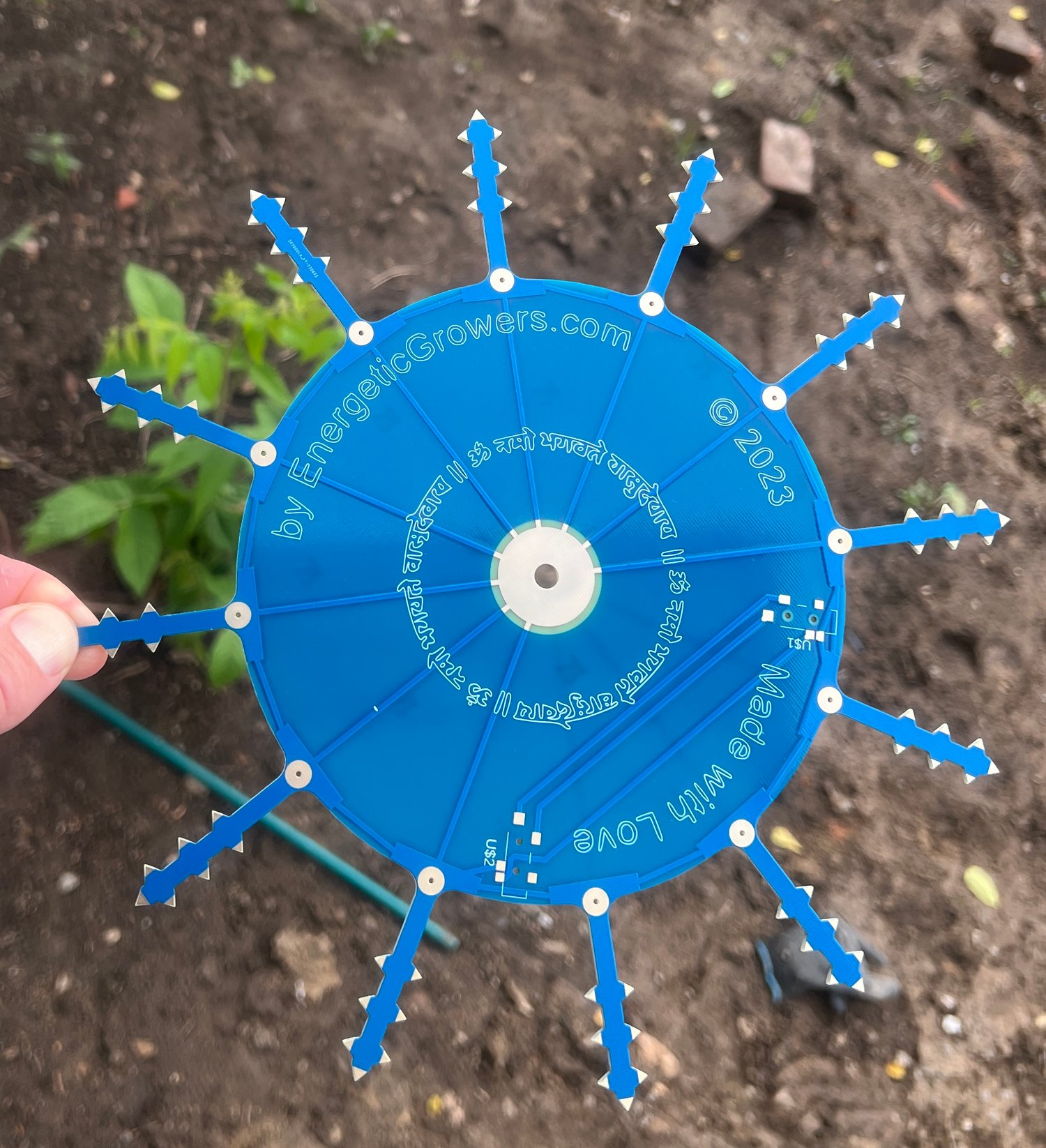 Furthermore, to maximize electricity collection efficiency, we built these using GOLD-tipped points to minimize corrosion effects, maximize conductivity and MAXIMIZE charge collection. With this device, collected charges accumulate in the center-ring where they can be siphoned off to your electroculture ground system, putting the energies into the ground for direct use by your plants!