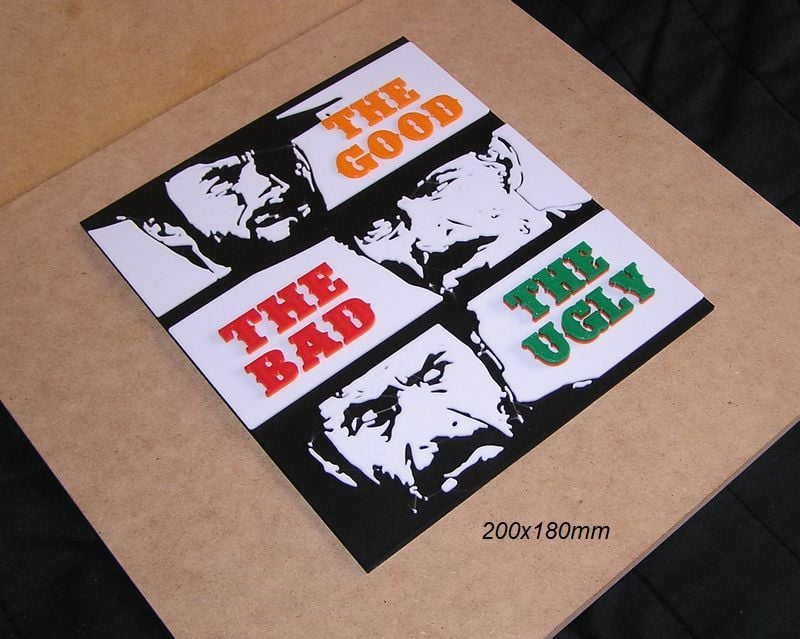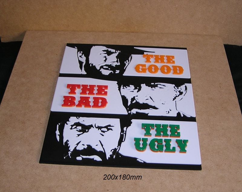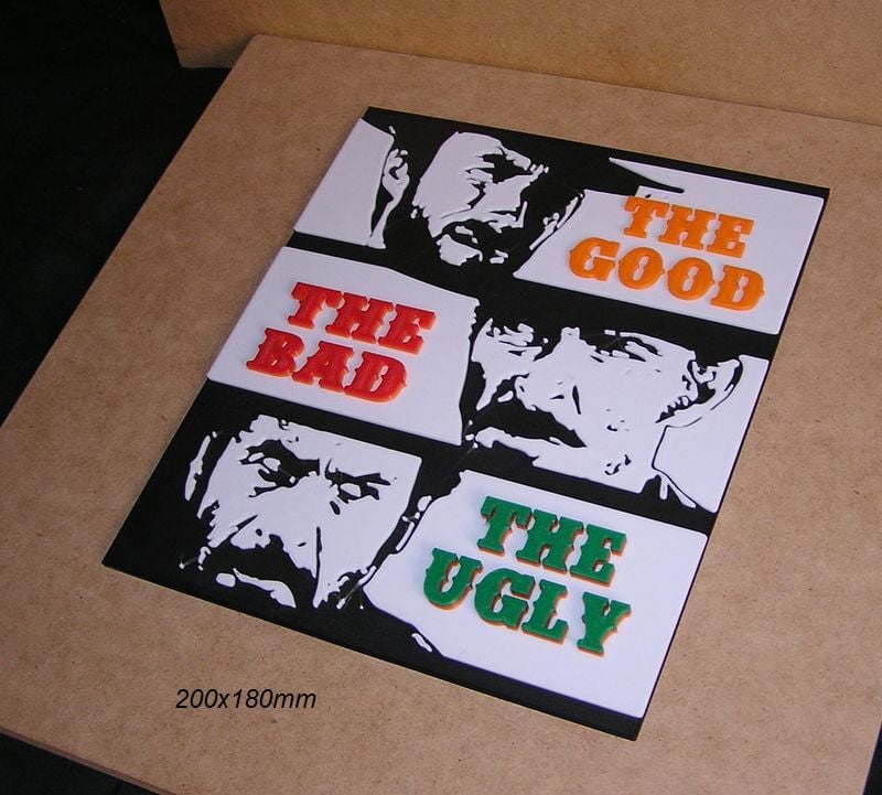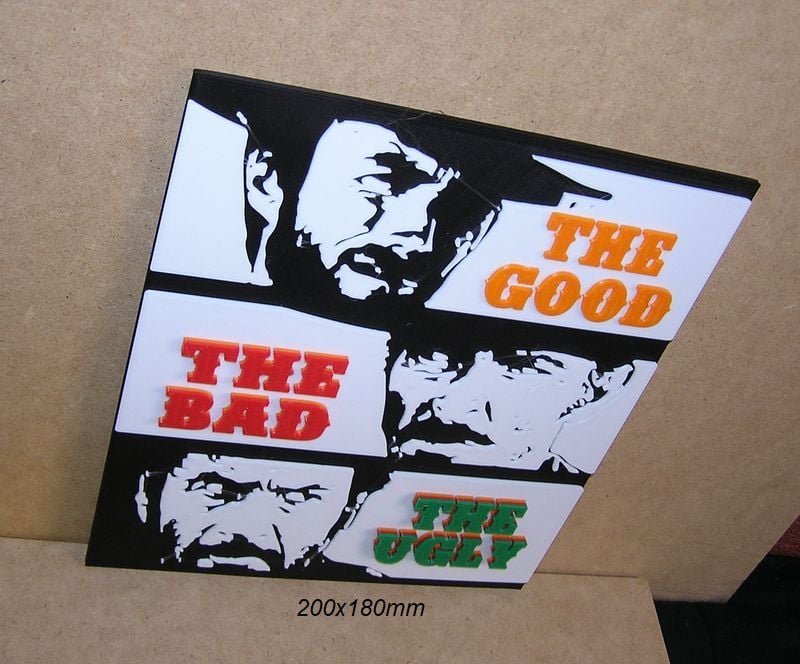 Poster, Sign, Logo of the movie: The Good, The Bad, The Ugly, these STL and Gcode files have been created to be printed in various colors with any FDM type printer. The color changes have been made with the Elegoo Neptune 3 Pro printer, but they can be printed on any printer.
