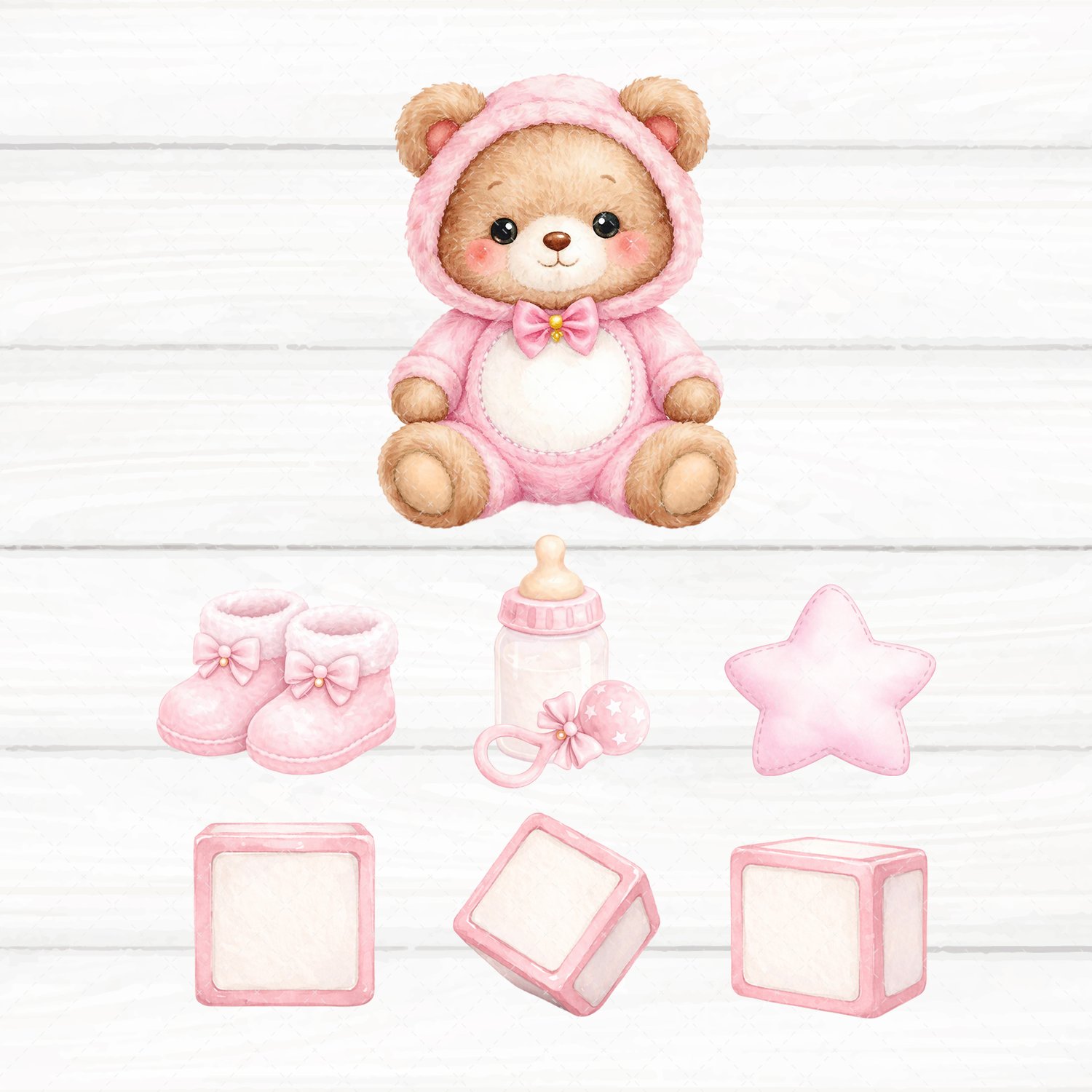 Born in 2026 Baby Bear Clipart Set (Blue and Pink)