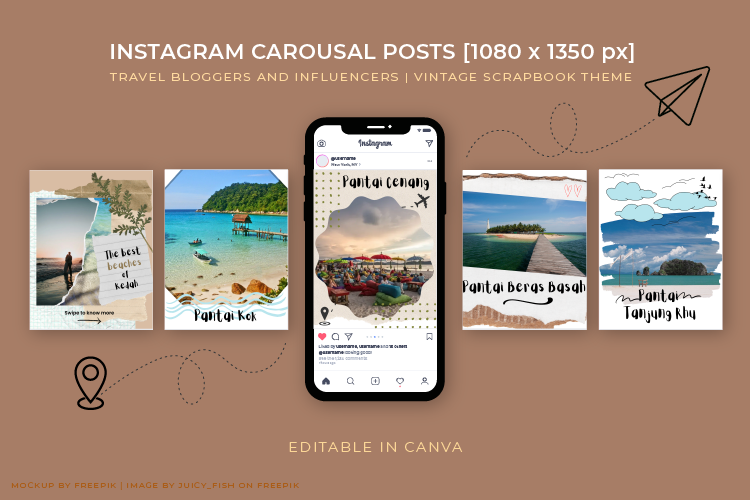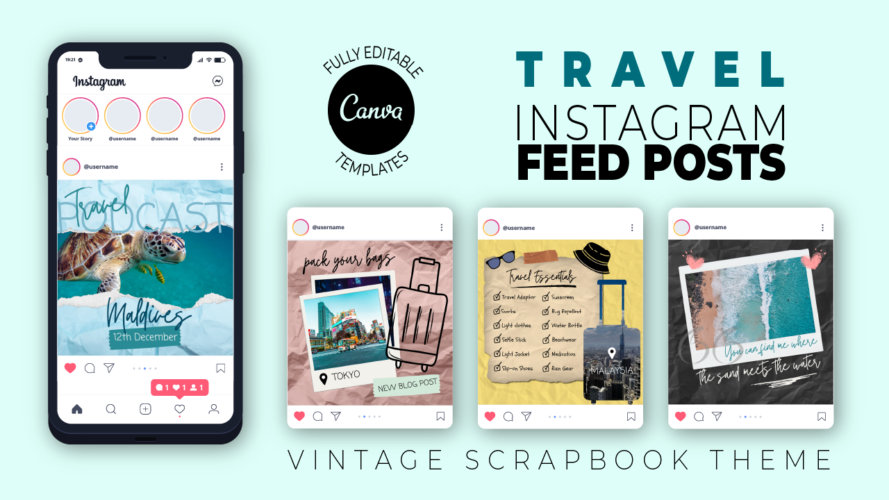 Vintage Scrapbook Theme Travel Instagram Feed Canva Templates