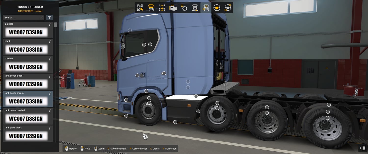 Scania tank covers works only with Scania no spoiler mod V2 and not work with and Base game Scania truck or Scania no spoiler mod V1