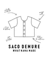 El saco Demure es una saco ligero que termina a la cintura. De confección sencilla ya que no lleva forro es ideal para principiantes. Cuenta con detalle de cruce de botones y fit cuadrado lo que lo hace una pieza ideal para agregar a un look y darle un toque más refinado y elegante.