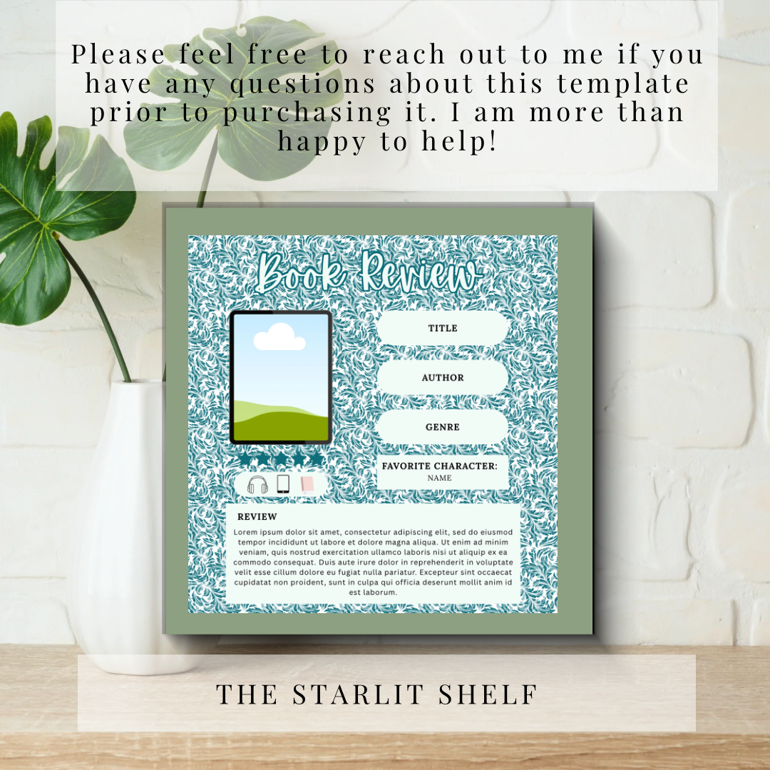 ✨ Teal Aesthetic Book Review Instagram Template | Canva Bookstagram Template ✨
