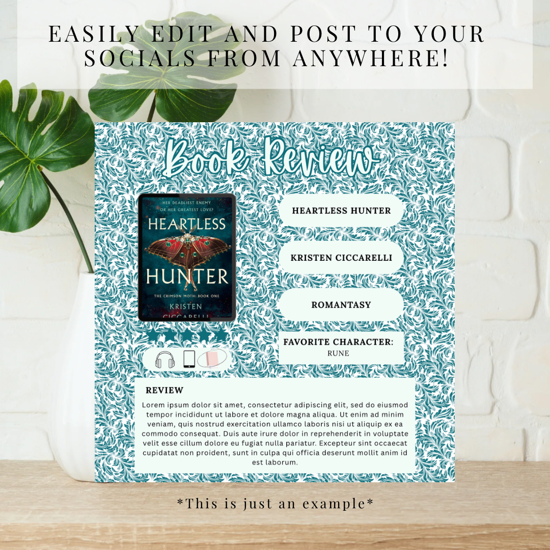 Whether you're reviewing your latest 5⭐ romantasy obsession or sharing emotional slow-burn favorites, this template helps your content stand out and stay on brand.