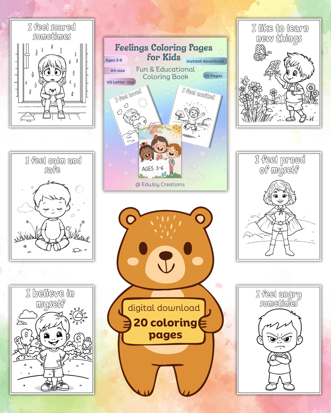Fun & Educational Emotional Learning Coloring Book – 20 Pages (PDF)