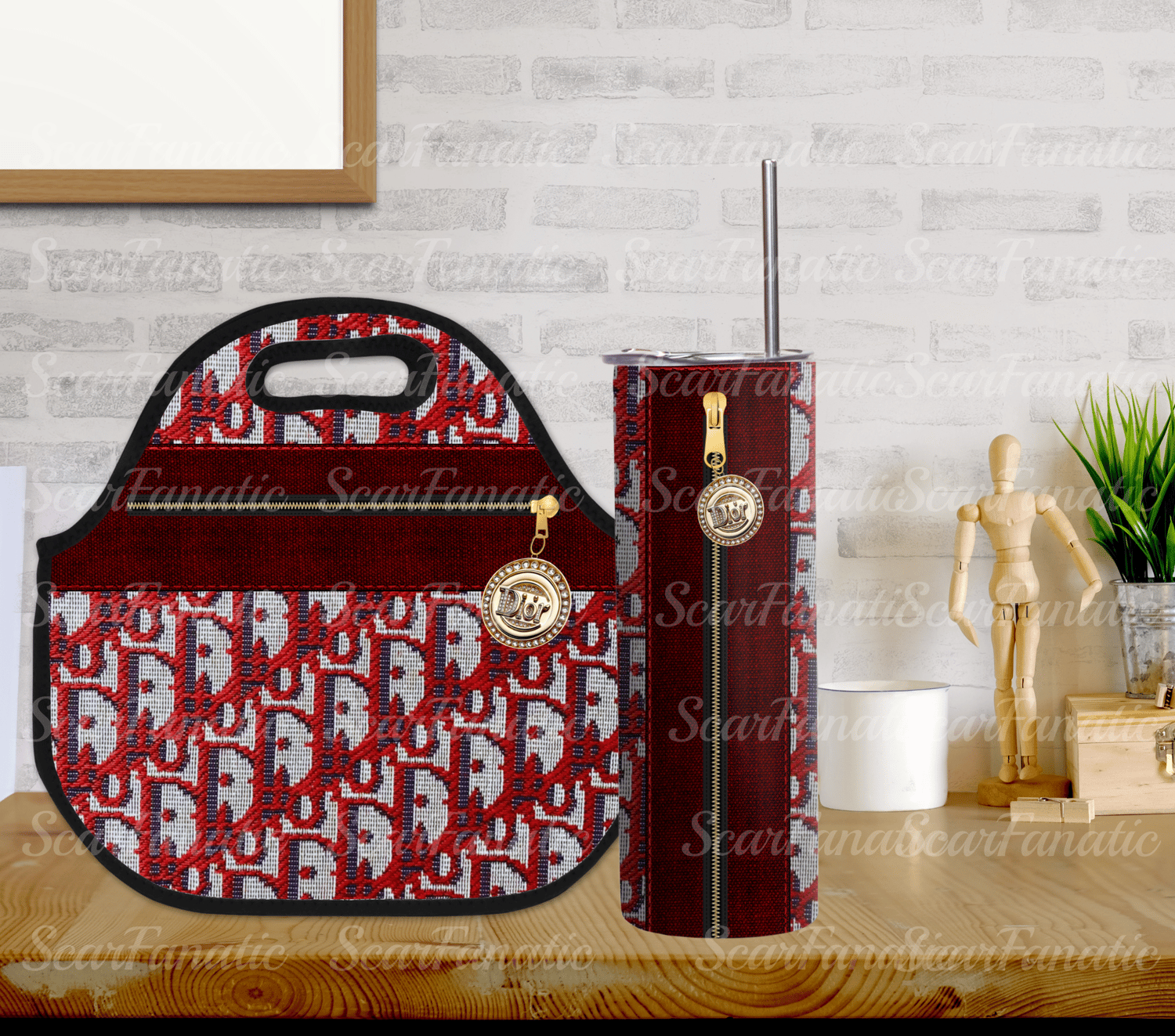 Red Dor Denim Purse Look 20oz Zipper Tumbler and Lunch Tote PNG Design Bundle