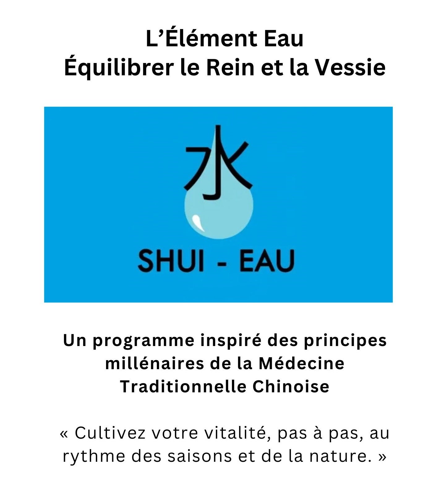 Livret – L’Élément EAU « Puisez dans vos réserves profondes – Équilibrer l’Eau en MTC »