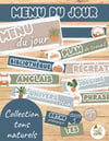 - Menu du jour : Étiquettes modulables pour créer un horaire clair (lecture, écriture, grammaire, math, sciences, arts, spécialistes, routines, pauses, projets, etc.).
