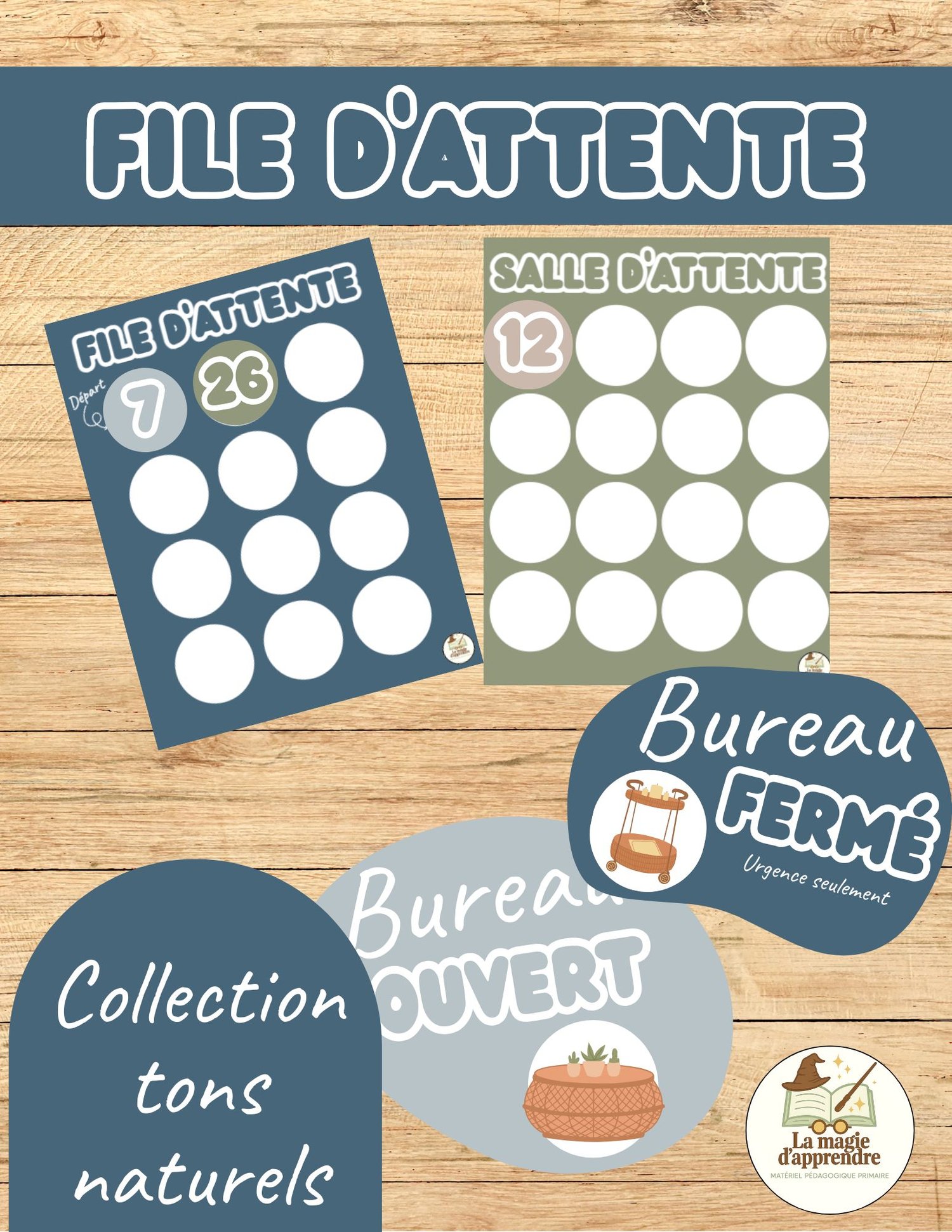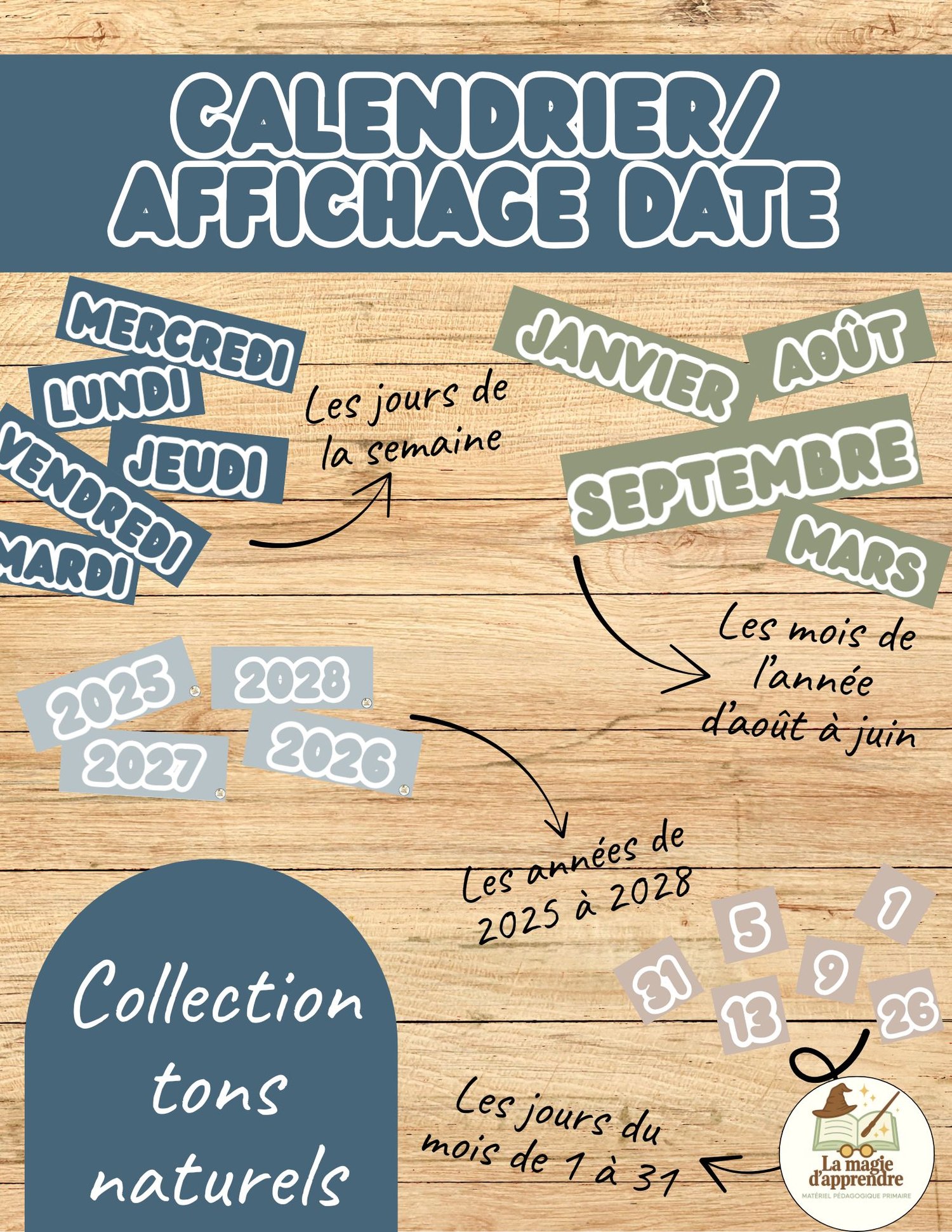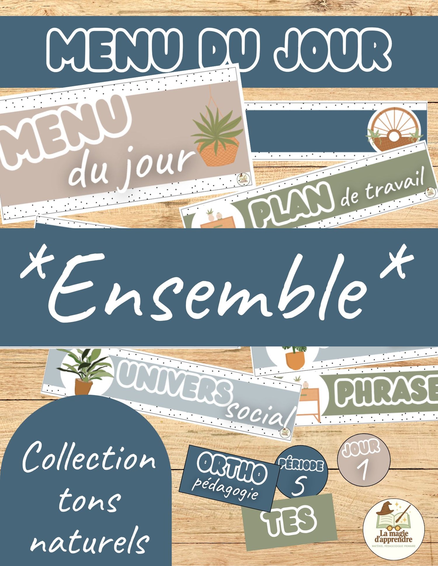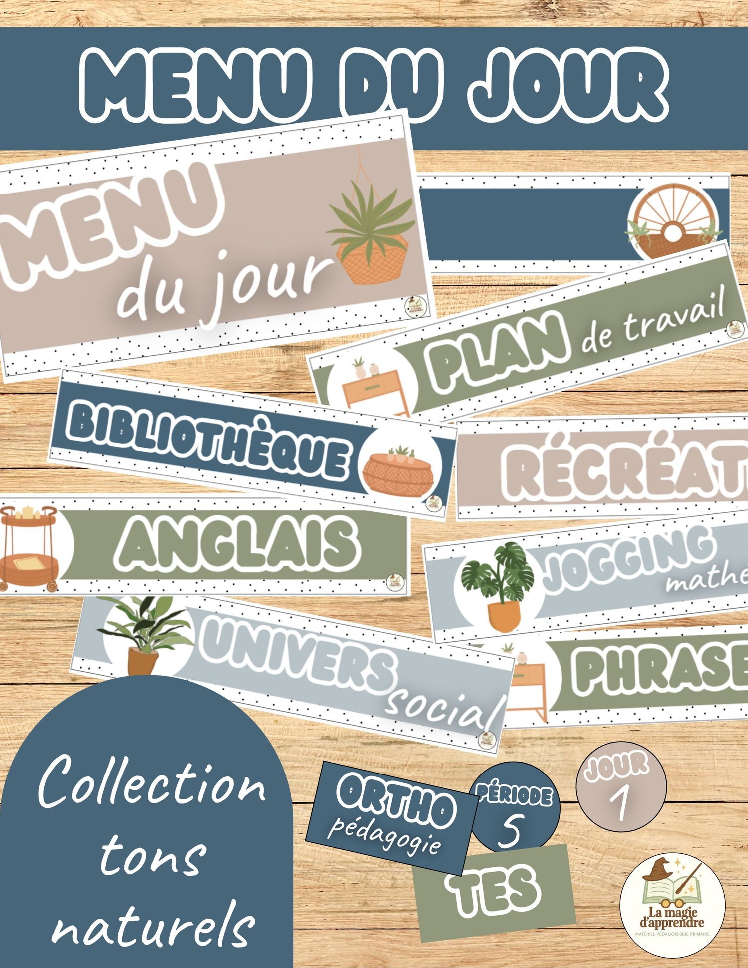 Cet ensemble est un outil visuel et pratique pour structurer la vie de classe au quotidien, tout en apportant une touche douce et esthétique grâce à sa palette de tons naturels (beige, terre, sable, bleu marin, etc.).