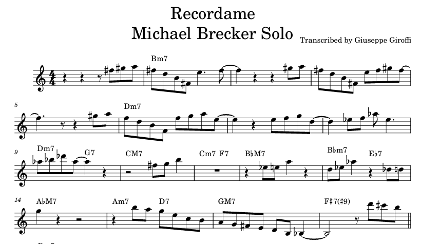 MIchael Brecker - Recordame - Solo Transcription - Tenor Sax (Bb)