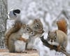 This is a collage generated from some photographs I took using an illustration mode on the camera and some photoshop! Here are a group of our squirrels in the middle of winter last year! This one includes a little Chickadee who was interesting in joining in! Ideal for a child's room!