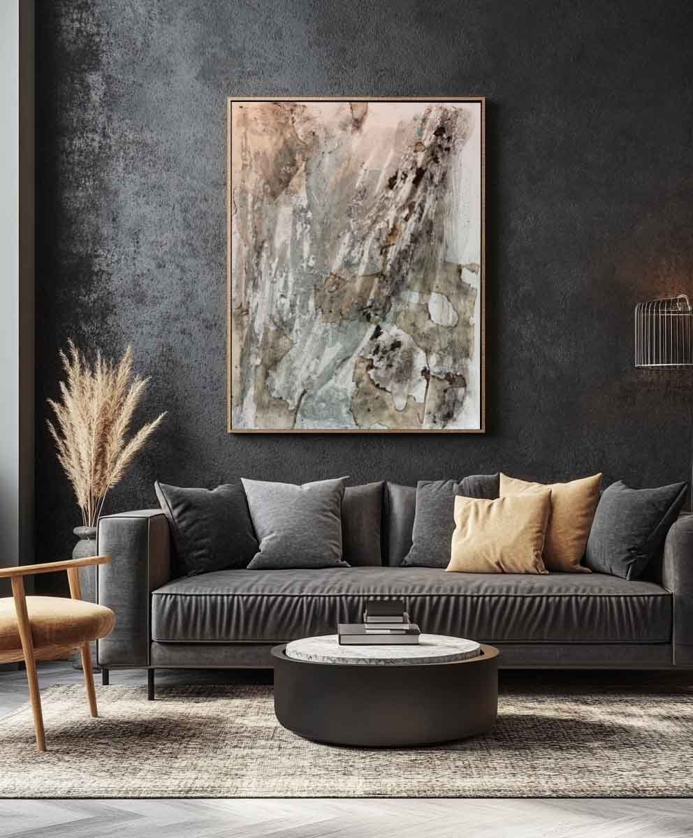 Cada obra nace de una alquimia íntima: ceniza, papel quemado, bolsas de té… materiales que se convierten en testigos de lo que fue y de lo que se suelta. El fuego no solo destruye: revela. Lo que arde, muta. Lo que desaparece, regresa en otra forma. Cada textura es memoria encarnada, emoción abrasada que encuentra cuerpo en la materia.