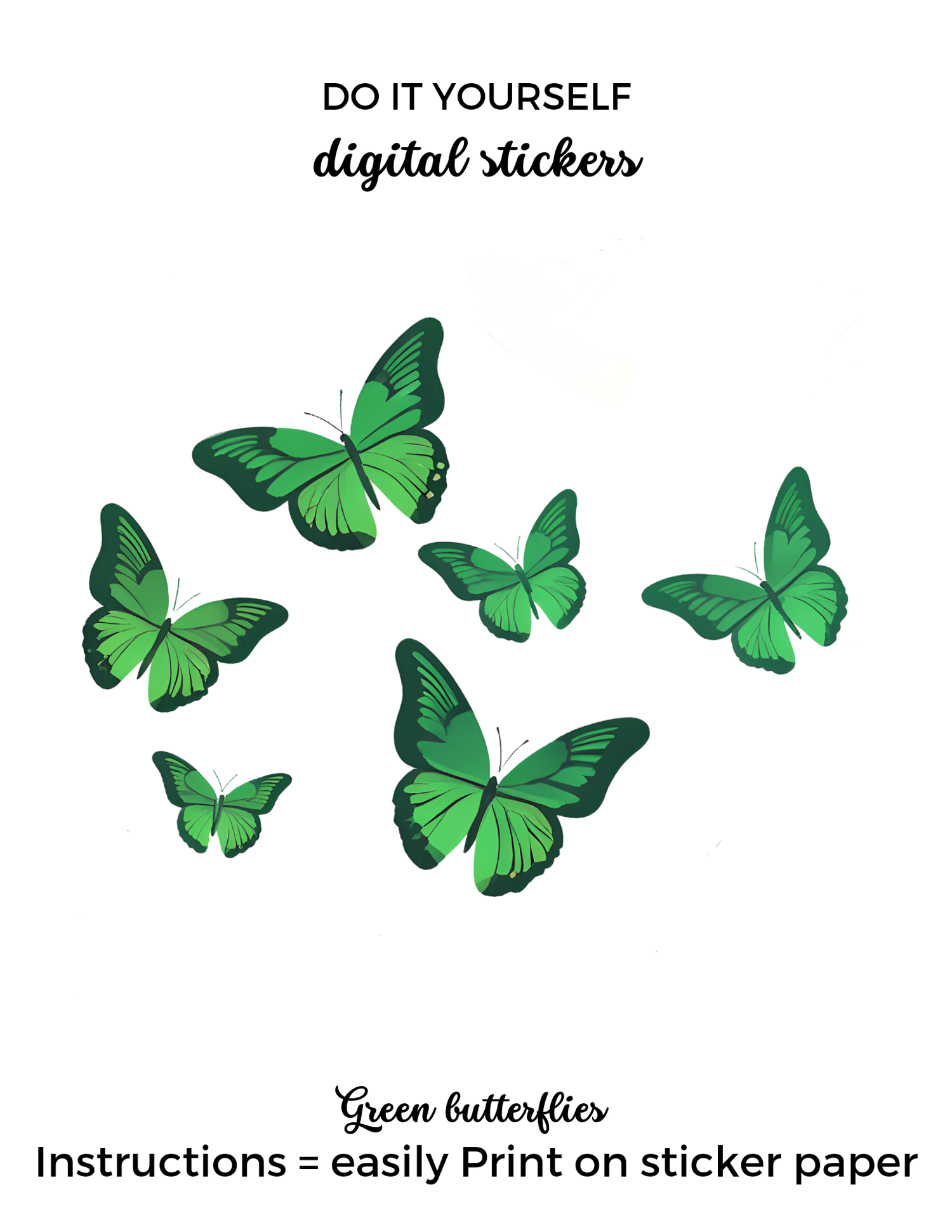 5 sheets of green butterflies digital stickers 🦋🦋🦋 including instructions