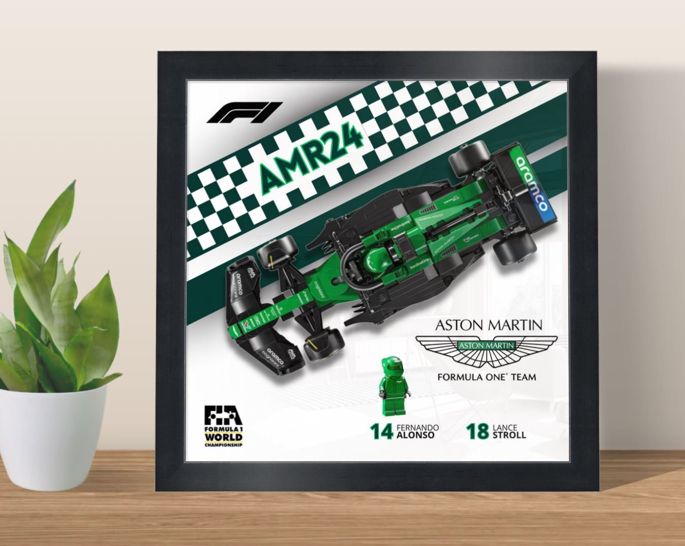 This product is an independent creation and is not affiliated with, endorsed, or sponsored by LEGO®, Formula 1®, Aston Martin®, Aramco®, or any other brand.