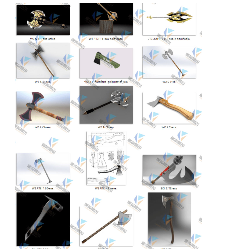 74 sets of axes, axes, handle 3D models, 3D drawings, cutting tools, weapons