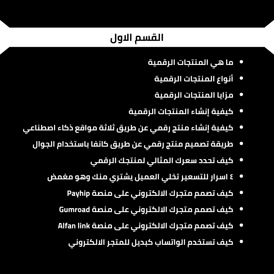 كورس المبتدئين للربح من المنتجات الرقمية ماهو مجرد كتاب الكتروني تتطلع عليه وخلاص, بل هو باقة كاملة متكاملة فيها معلومات و فيديوهات تقدر تتطبقها وترجع لها في اي وقت وعلى راحتك