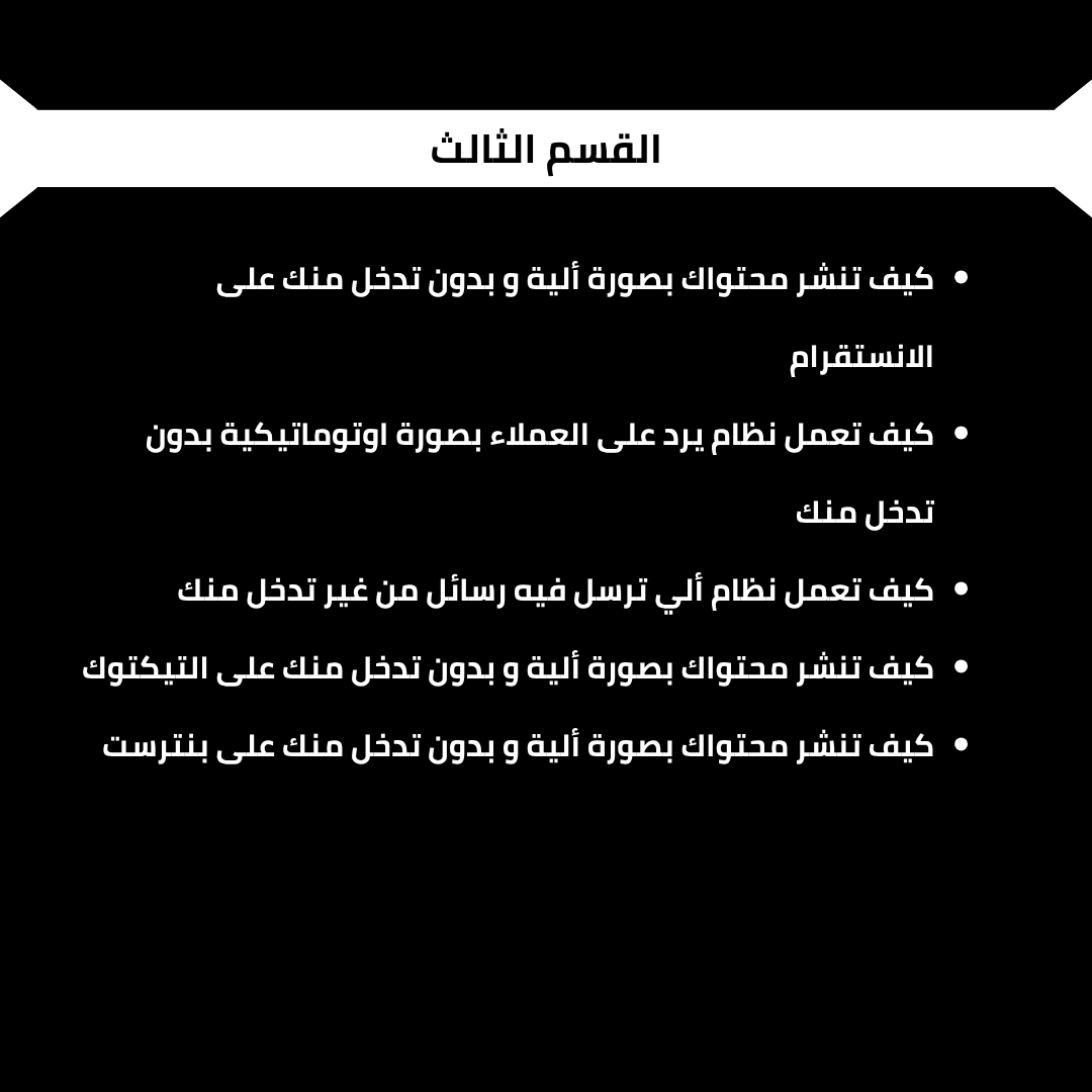 حزمة المحتوى الخاص: هي عبارة عن محتوى جاهز للاستخدام مكون من 100 فيديو و 100 صورة بجودة عالية, راح يساعدوك في بداية رحلتك في التسويق لمنتجك الرقمي