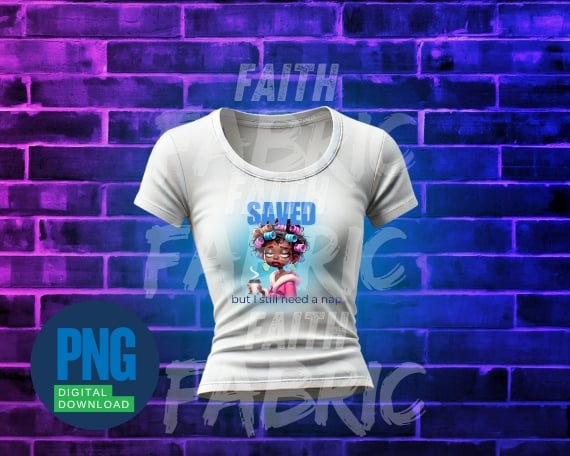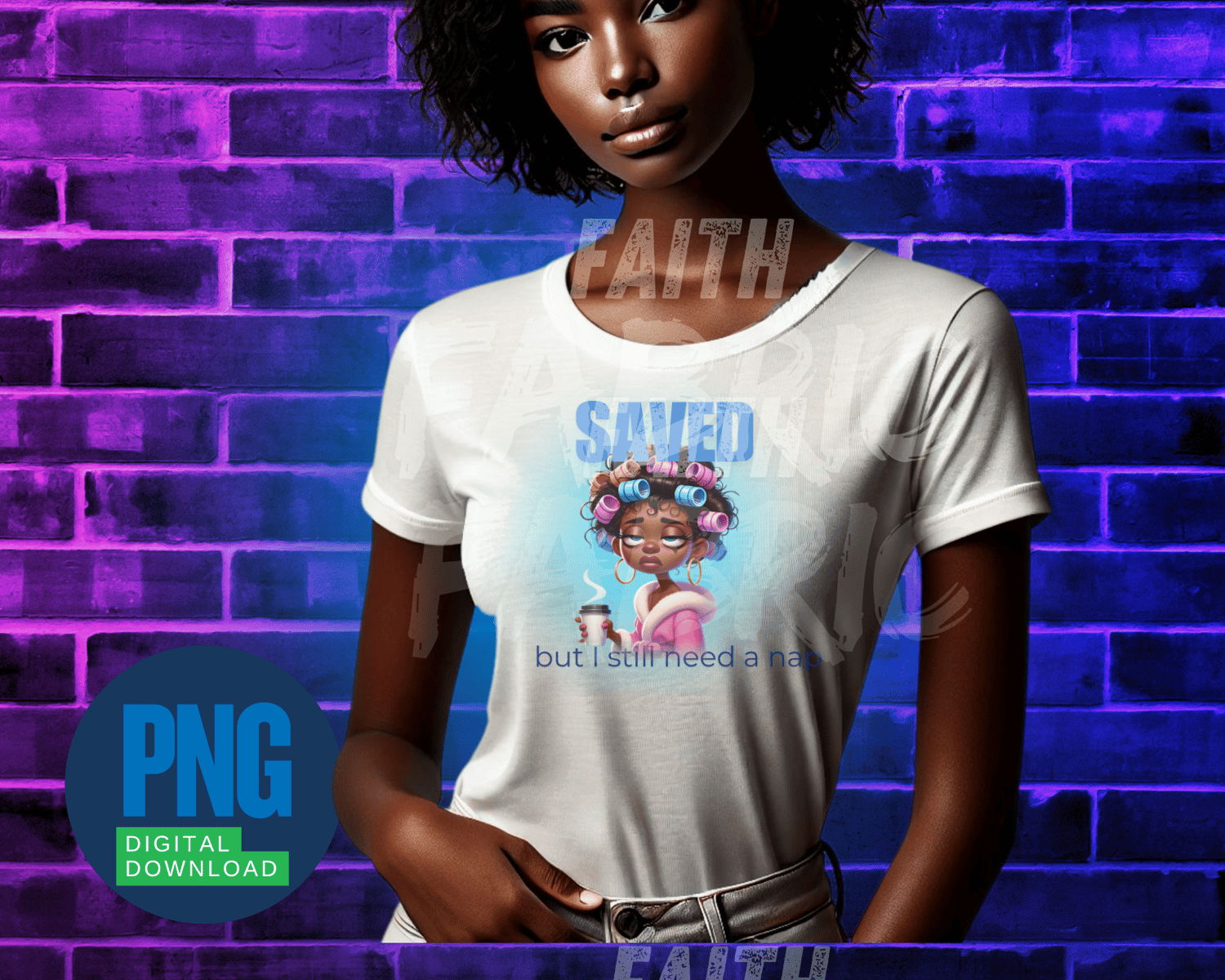 Bring humor and faith together with this "SAVED but I Still Need a Nap" PNG digital download!