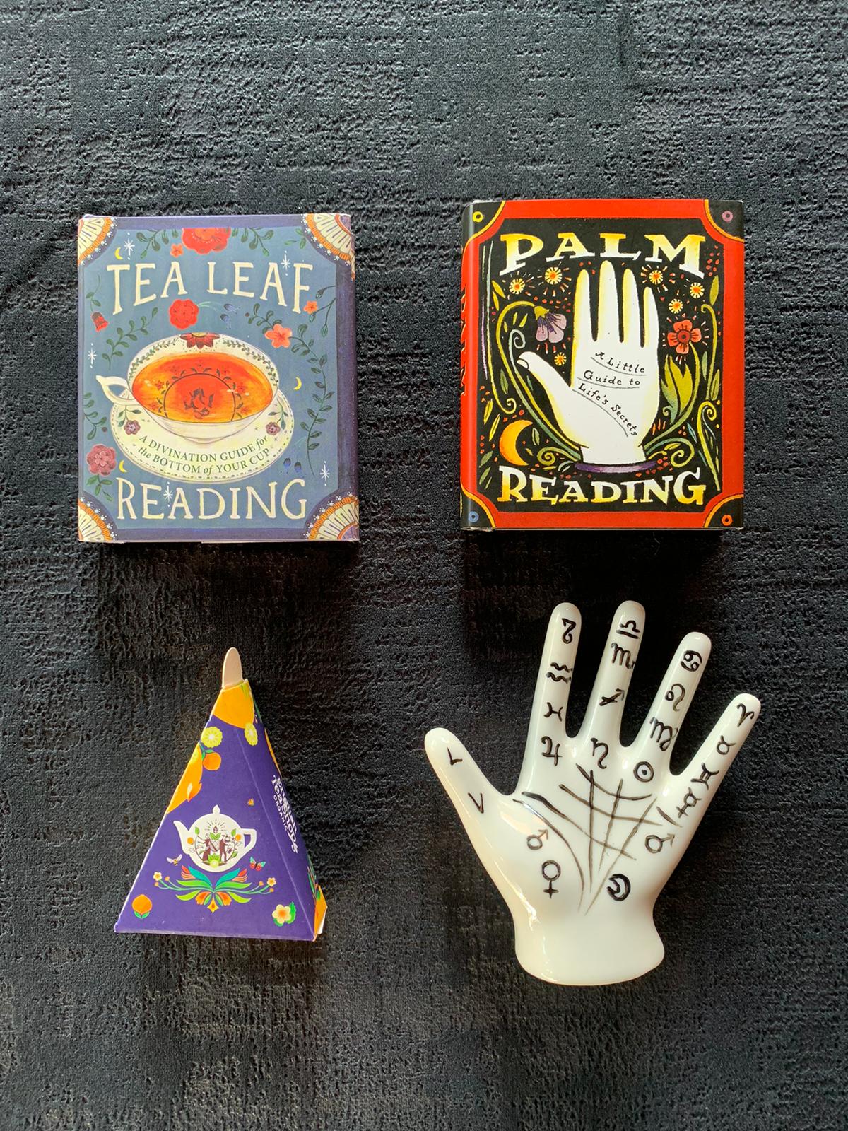 - Tea Leaf Reading: libricino per la lettura dei fondi ti tè (tasseomanzia), facente parte della storica collezione Farchild. Il testo (in inglese) spiega in modo chiaro e semplice, come leggere nel dettaglio i fondi del tè. Carte non incluse.