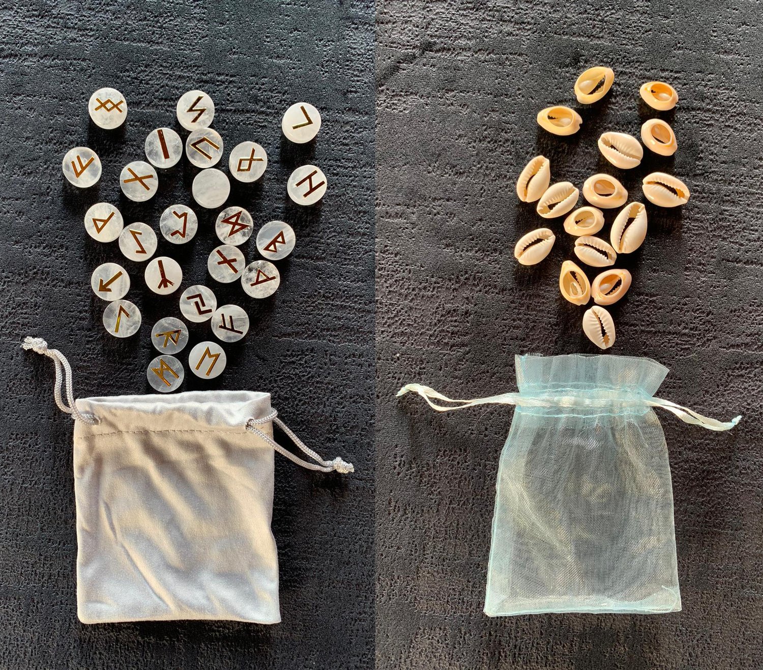 - Set di Buzios composto da 16 conchiglie "Cypraea Monetaria Moneta", per indenderci, la conchiglia usata come moneta di scambio nell'antichità. I Buzios sono un sistema divinatorio antichissimo, originario dell'Africa e diffuso soprattutto in Sud America dalle popolazioni Yoruba.