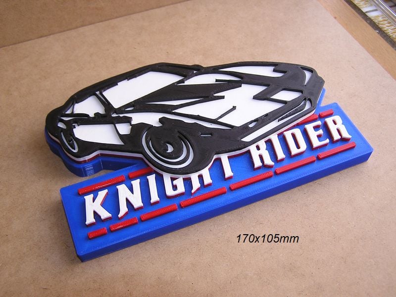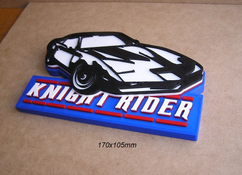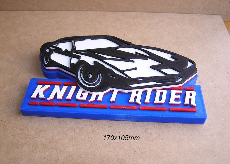 Knight Rider Poster, Sign, Logo of the movie, these STL and Gcode files have been created to be printed in various colors with any FDM type printer. The color changes have been made with the Elegoo Neptune 3 Pro printer, but they can be printed on any printer.