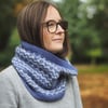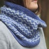 The Drift & Ebb cowl is worked in the round and the pattern is reminiscent of the surf hitting the shore. The pattern reverses at the centre, hence the name drifts in and ebbs out. Drift & Ebb is an ideal pattern to try stranded knitting for the first time as it can be worked on a full circular needle, so no needle joins need to be dealt with. Plus the floats are short enough not to need any weaving. The pattern repeats across the row too, so easy to memorise.