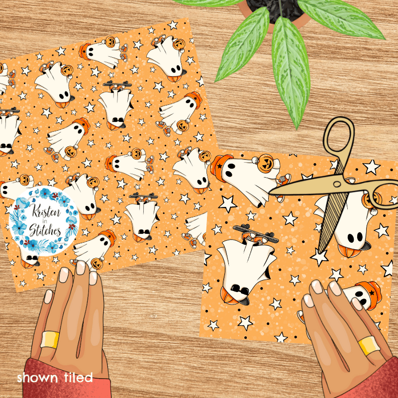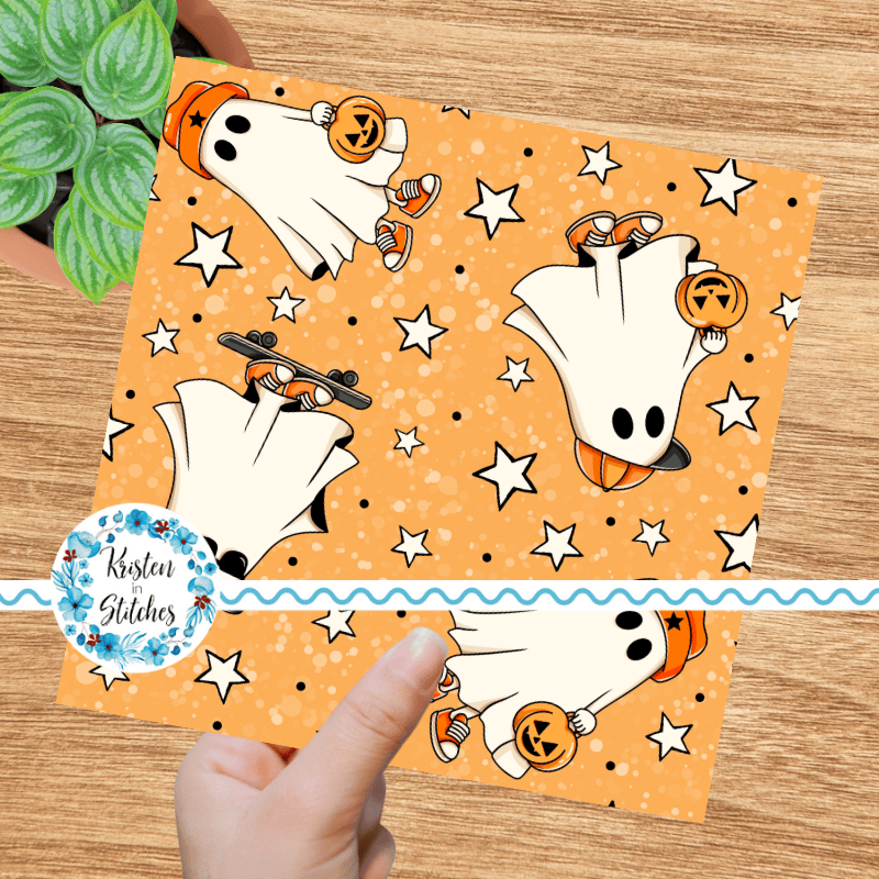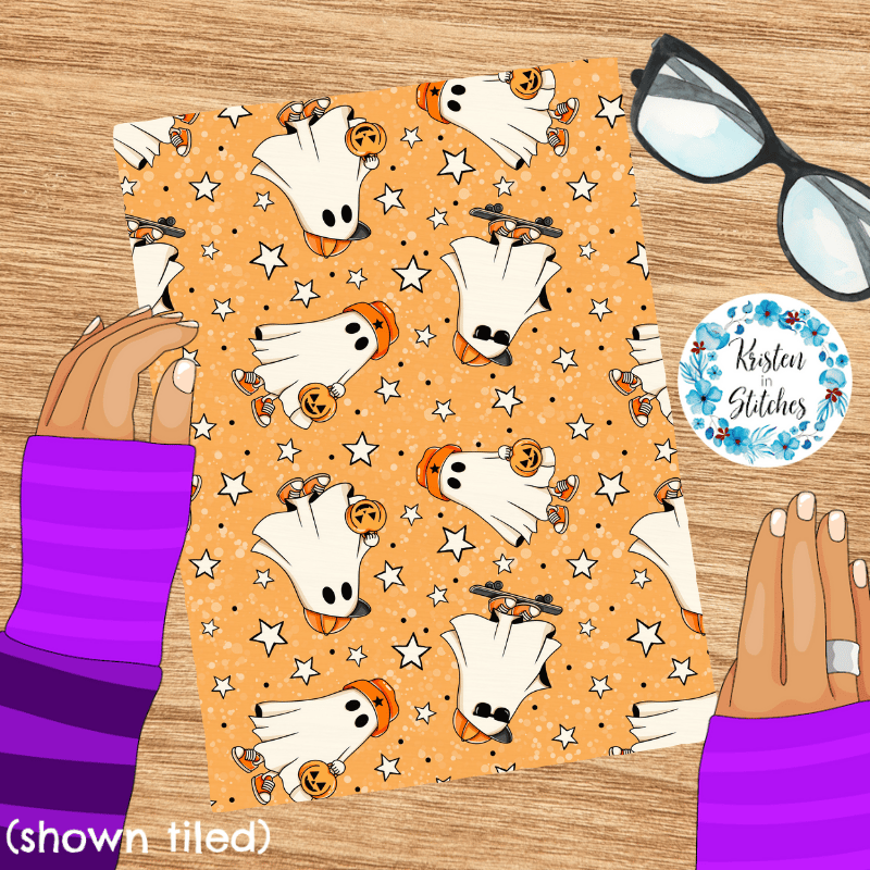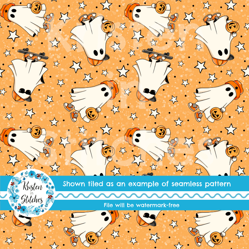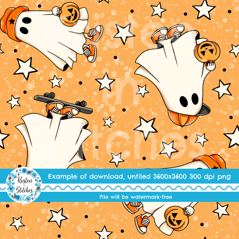 Cool Kids Skateboarding Ghosts Halloween Seamless Pattern