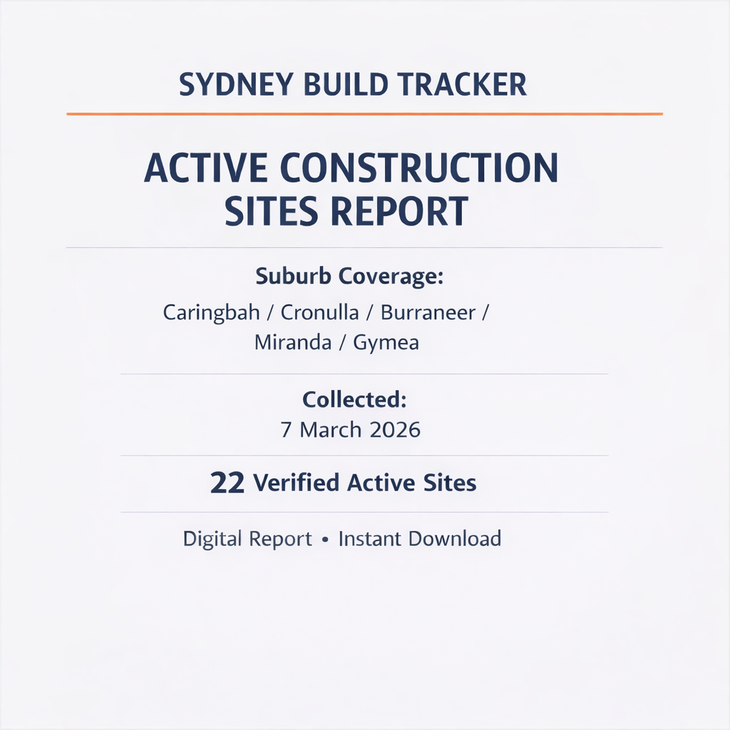 Information collected via public roadside observation for marketing and prospecting purposes only. Sydney Build Tracker is not affiliated with builders, developers, or property owners listed within the report.