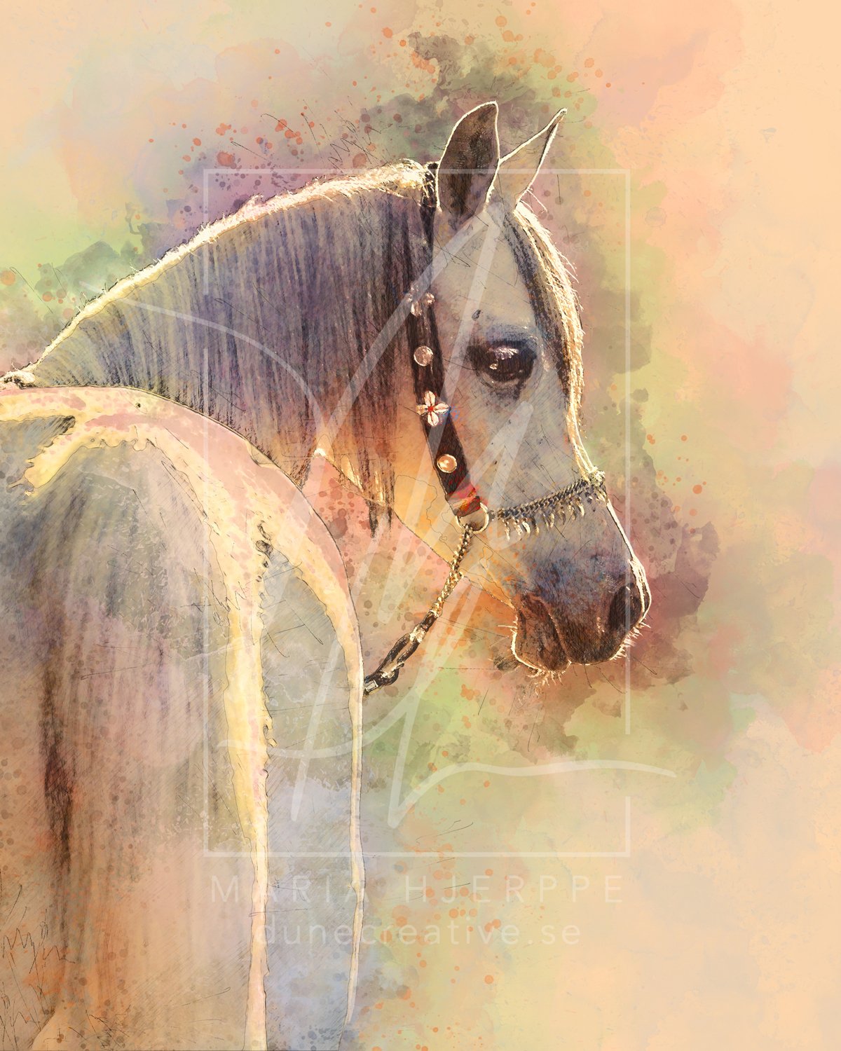 A stunning Arabian mare surrounded by the enchanting colors and light of summer.
