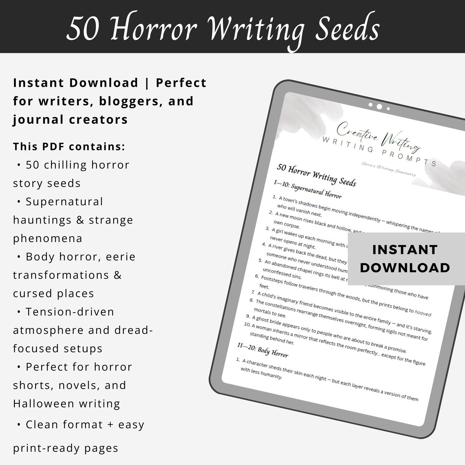 • Great for October challenges or year-round darker storytelling