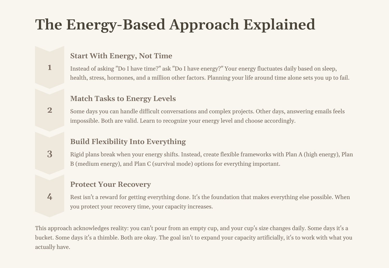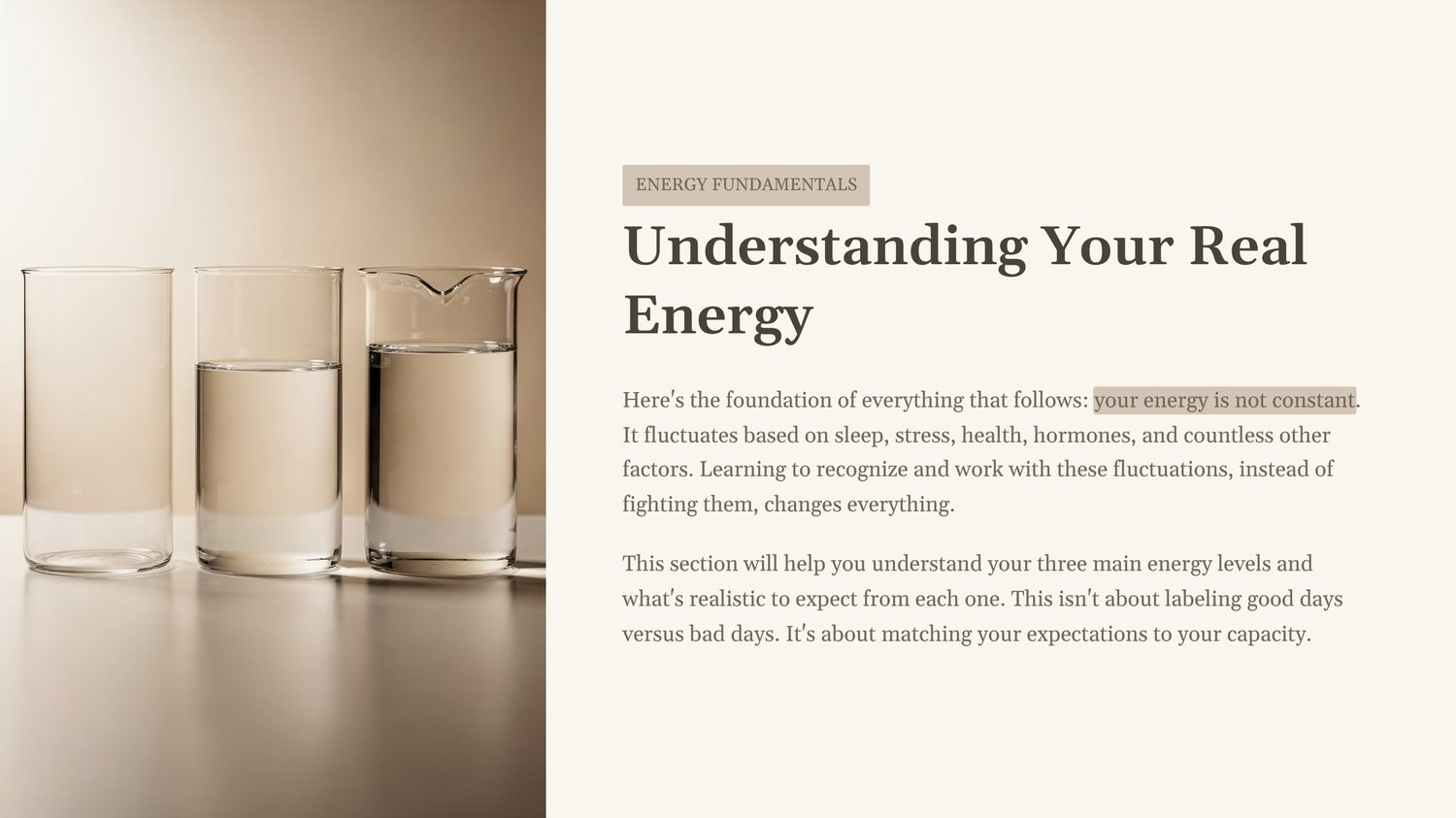 This workbook doesn’t ask you to overhaul your life or add more to your plate. It meets you where you are, with an energy-based approach that adapts to how much capacity you actually have on any given day.